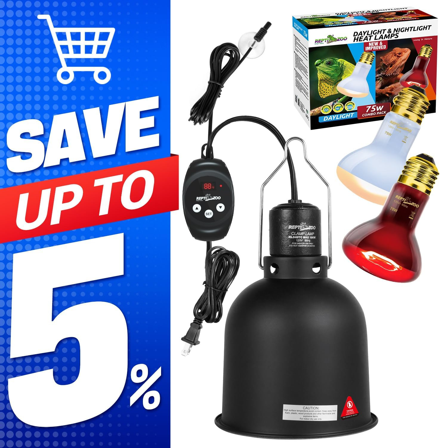 5.5 Inch Deep Dome Reptile Light Fixture with Dimming Heat Lamp Temperature Cont