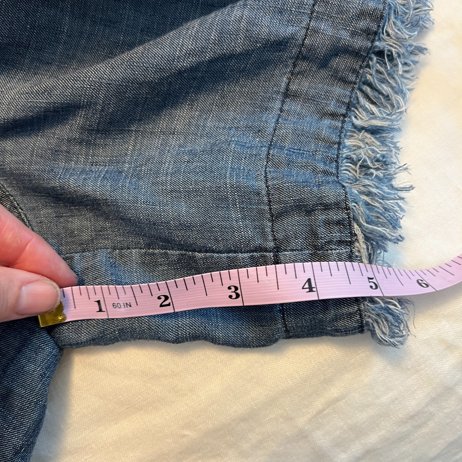 Trina Turk denim off Shoulder fringe Shorts Romper size medium new summber blue