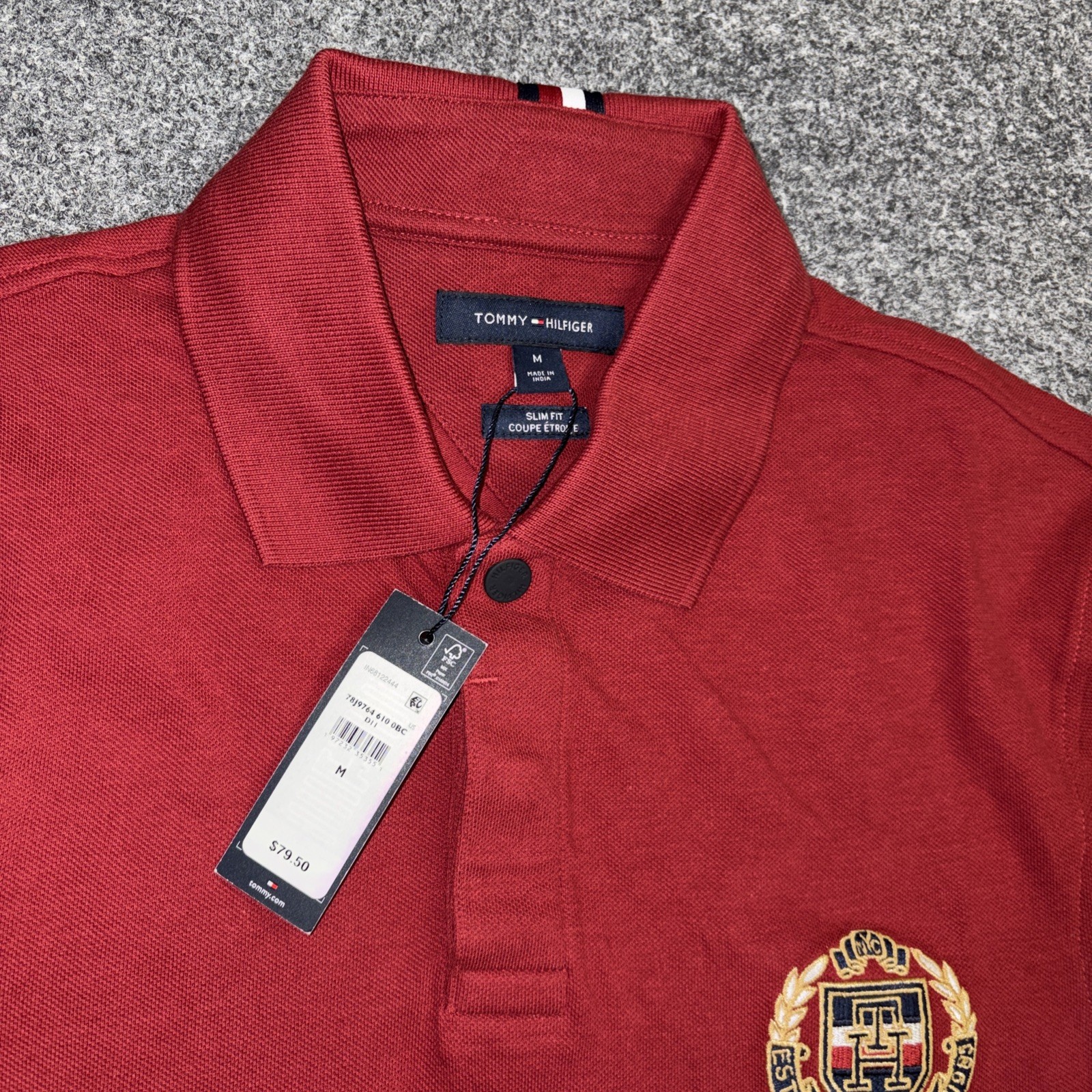 NWT Tommy Hilfiger Mens Med Slim Fit New York Embroidered Logo Badge Polo Shirt