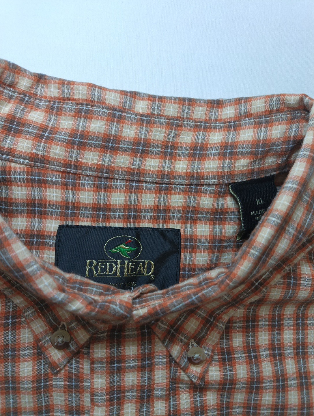 Redhead Men s Short Sleeve Button Up Size XL Orange and Brown Plaid