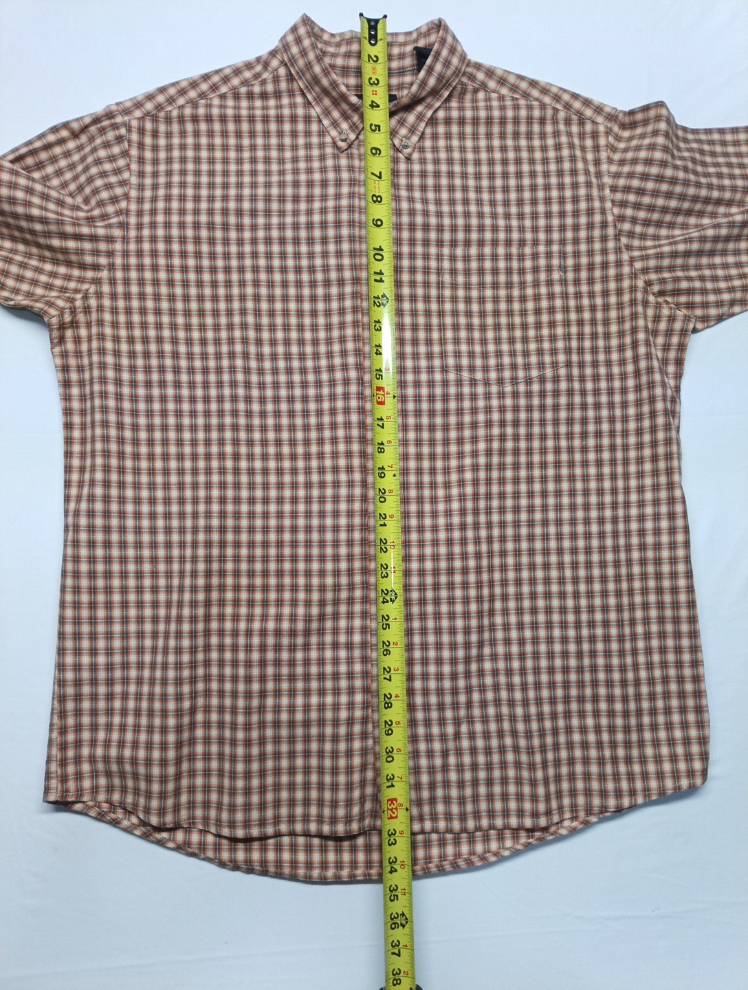 как выглядит Redhead Men s Short Sleeve Button Up Size XL Orange and Brown Plaid фото