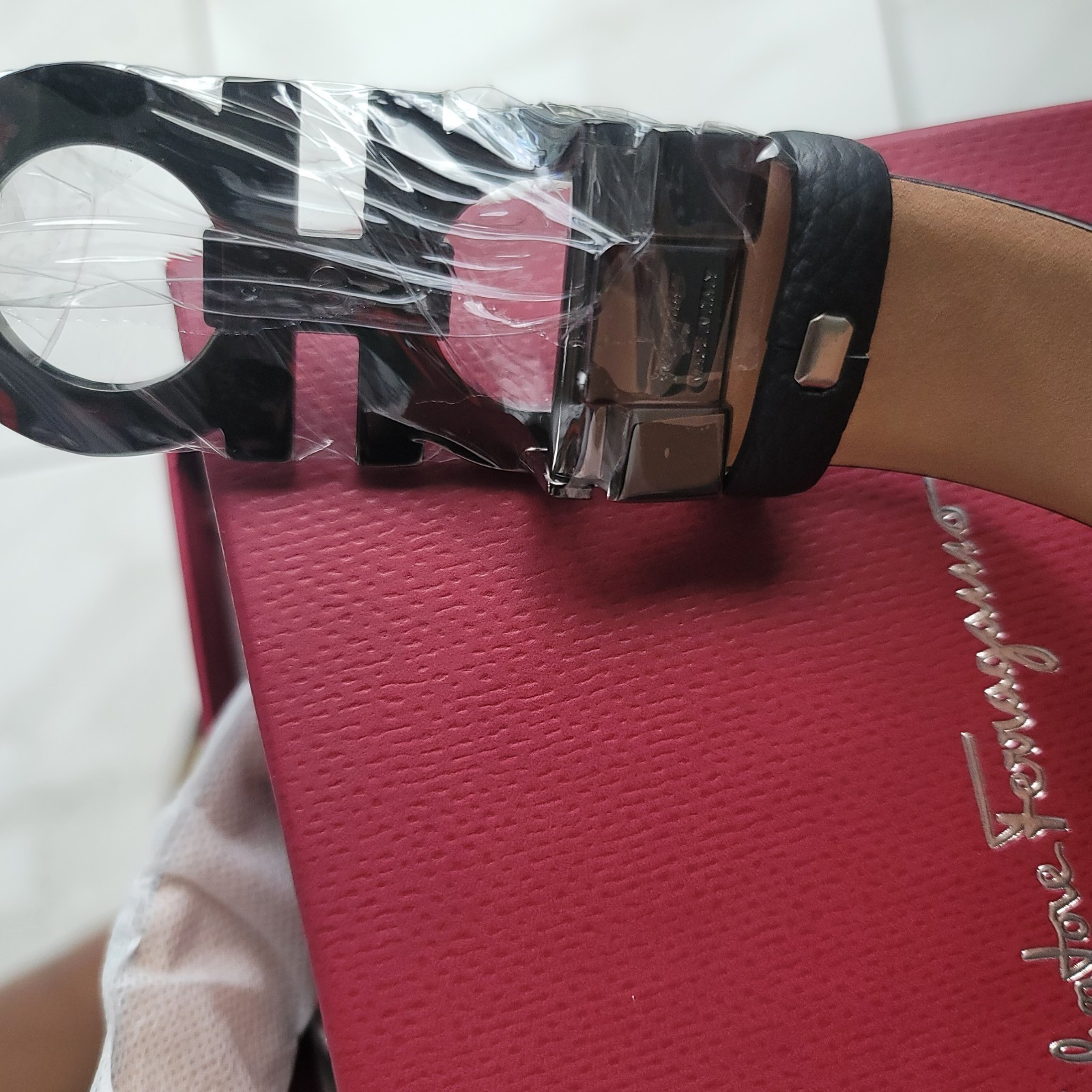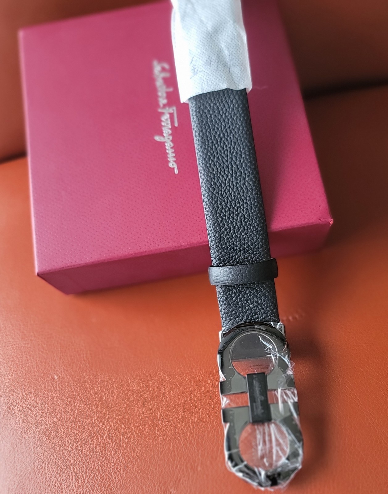 как выглядит Salvatore Ferragamo Mens Leather Black Buckle Belt Size 44 фото