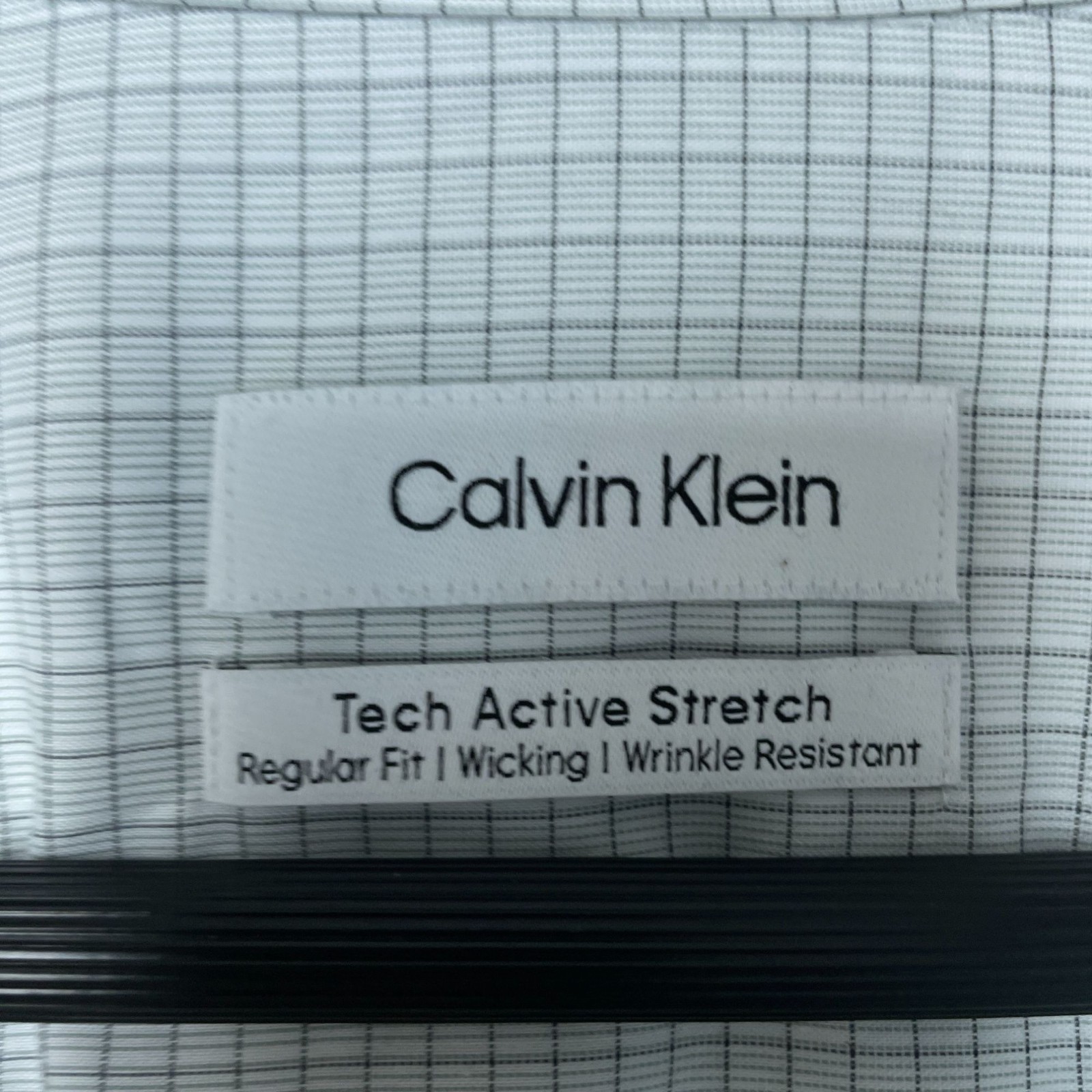 Calvin Klein Men's L Tech Active Stretch Dress Shirt Gray Plaid F1020