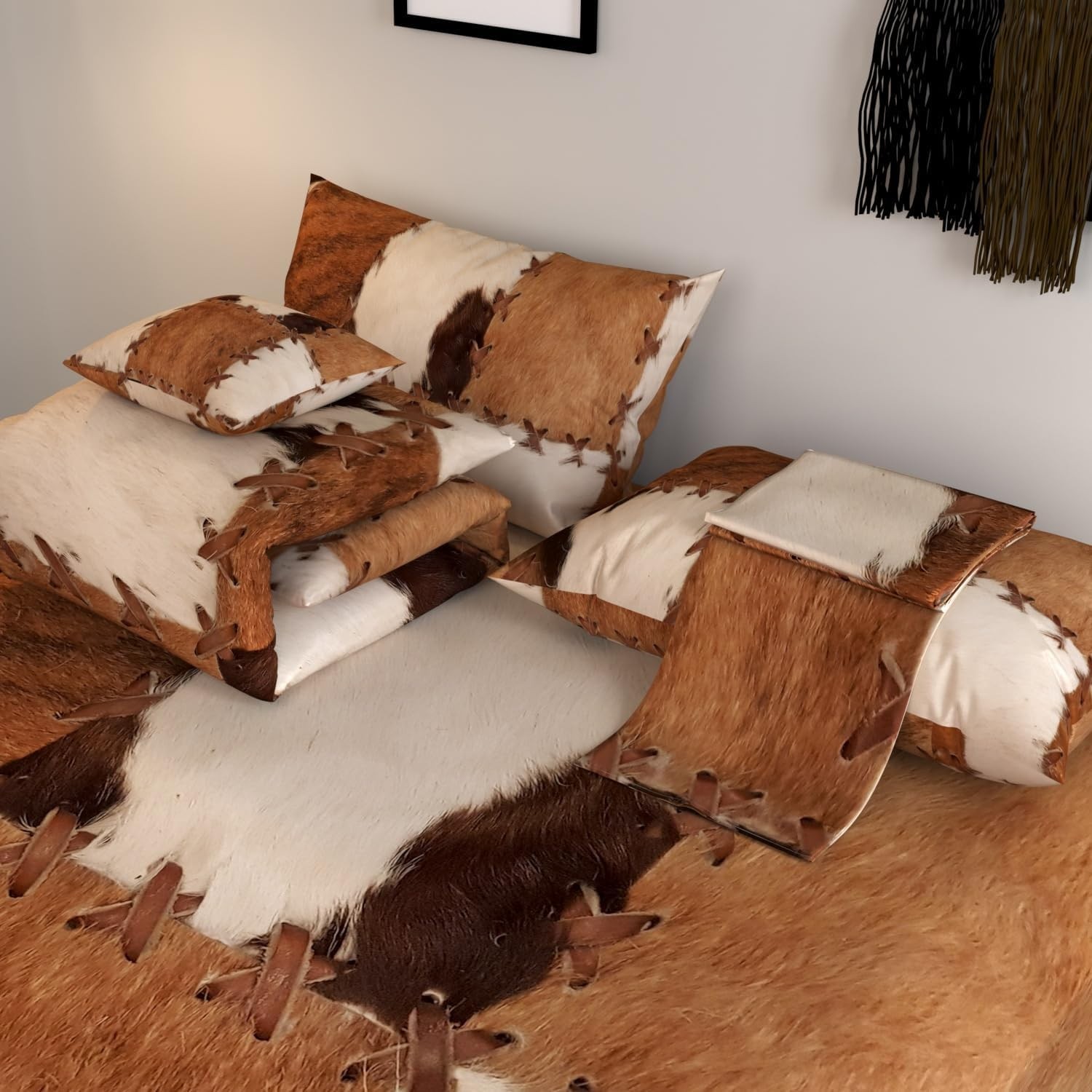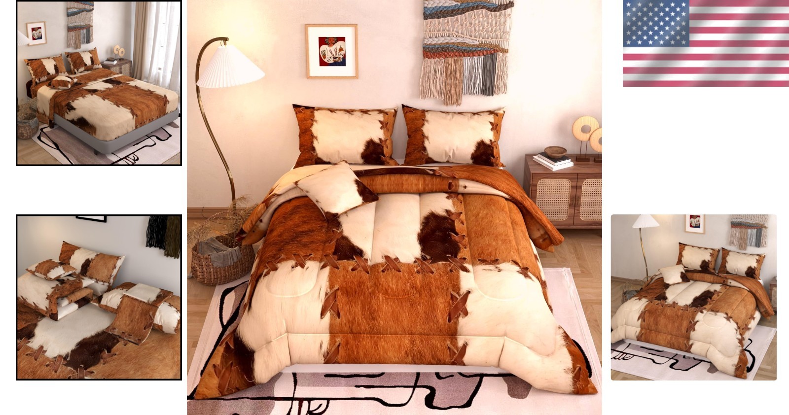 как выглядит 6-Piece Rustic Cow Comforter Set with 3D Pattern, Queen Size Bedding Essentials фото
