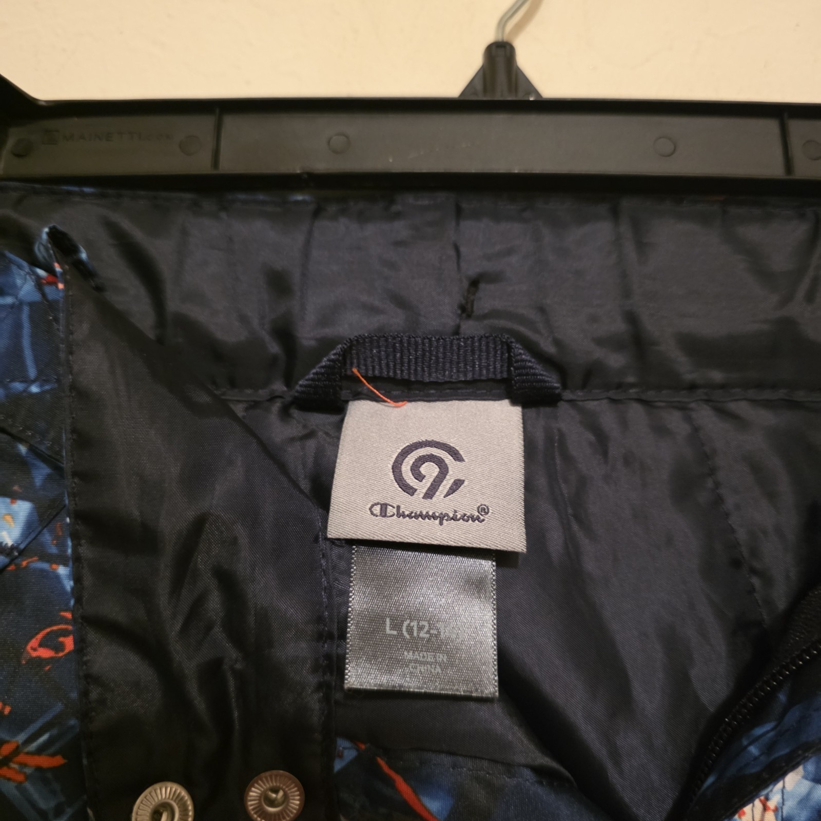 как выглядит Champion Kids L 12-14 Blue Black Geometric Snow Pants Insulated Zip фото