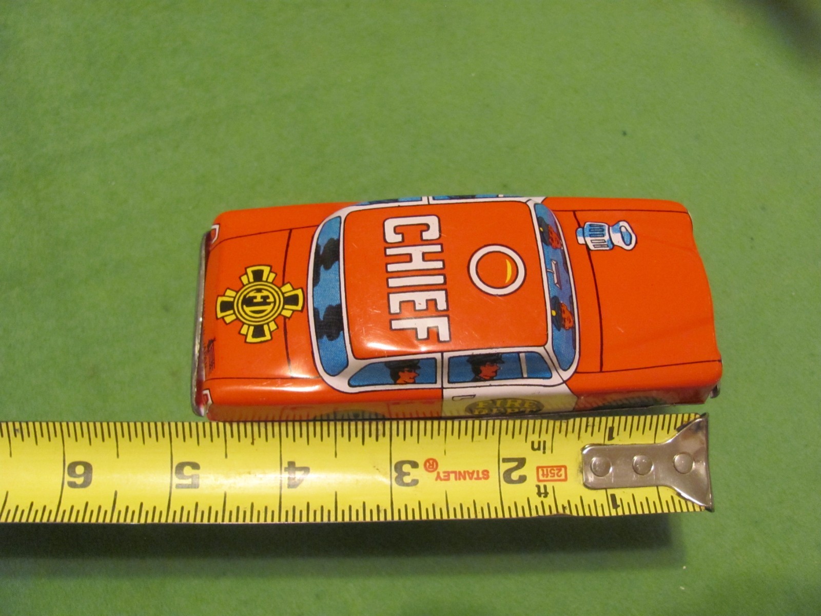как выглядит Vintage Tin Litho Fire Dept. Chief Friction Toy Car, Made in Japan фото