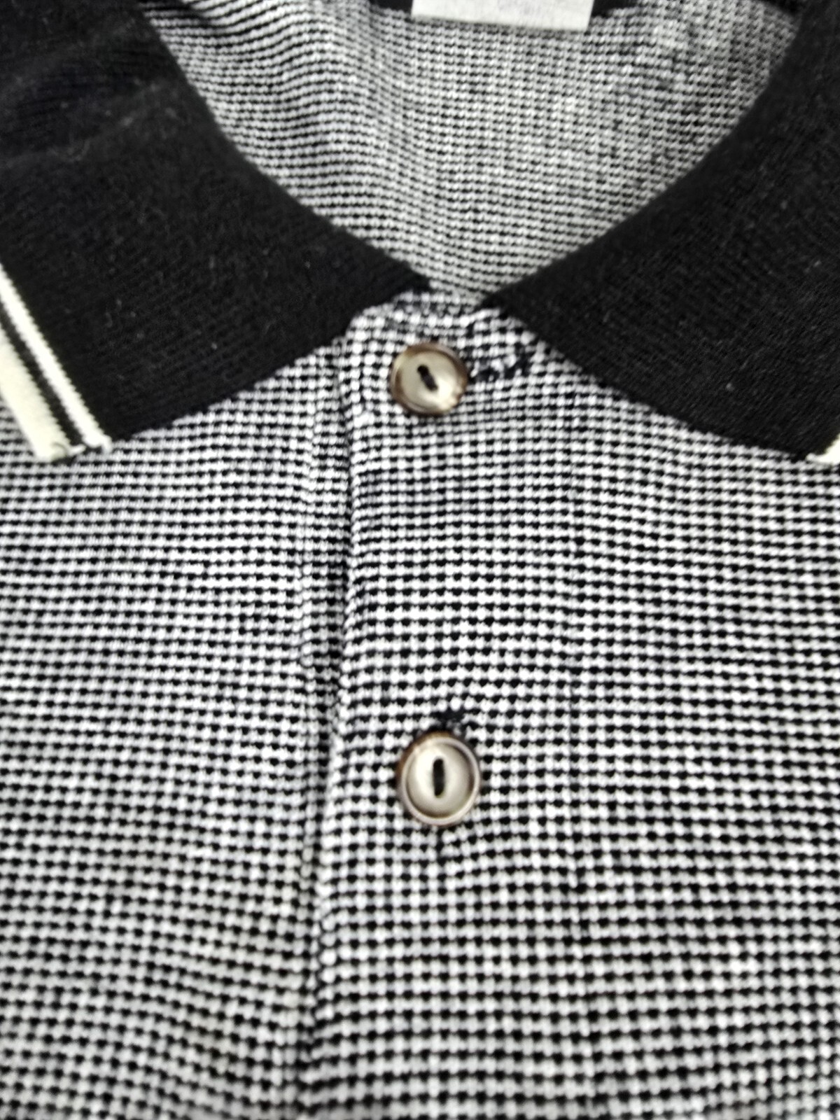 Accents: Embroidered, Black collar, Textured knit fabric