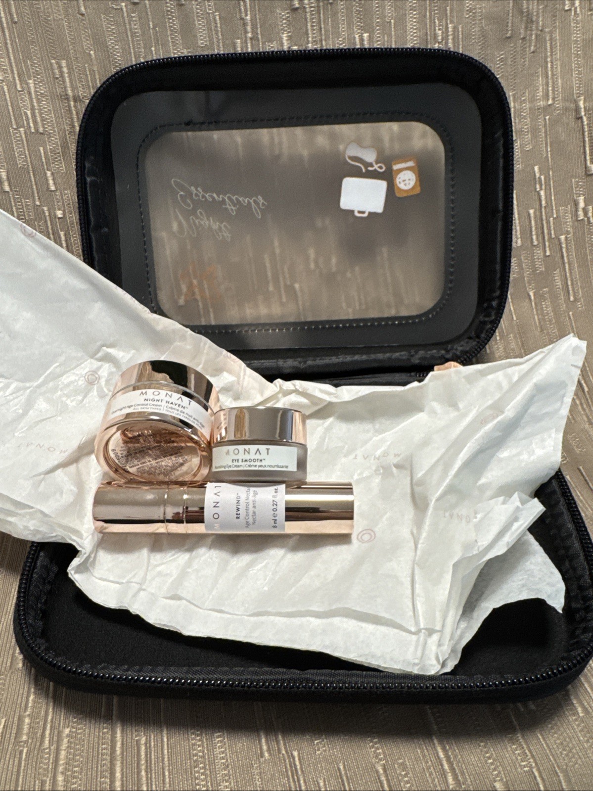 как выглядит Monat NIGHT ESSENTIALS Travel Set/Kit Rewind/Night Haven/Eye Smooth/Case 26 фото