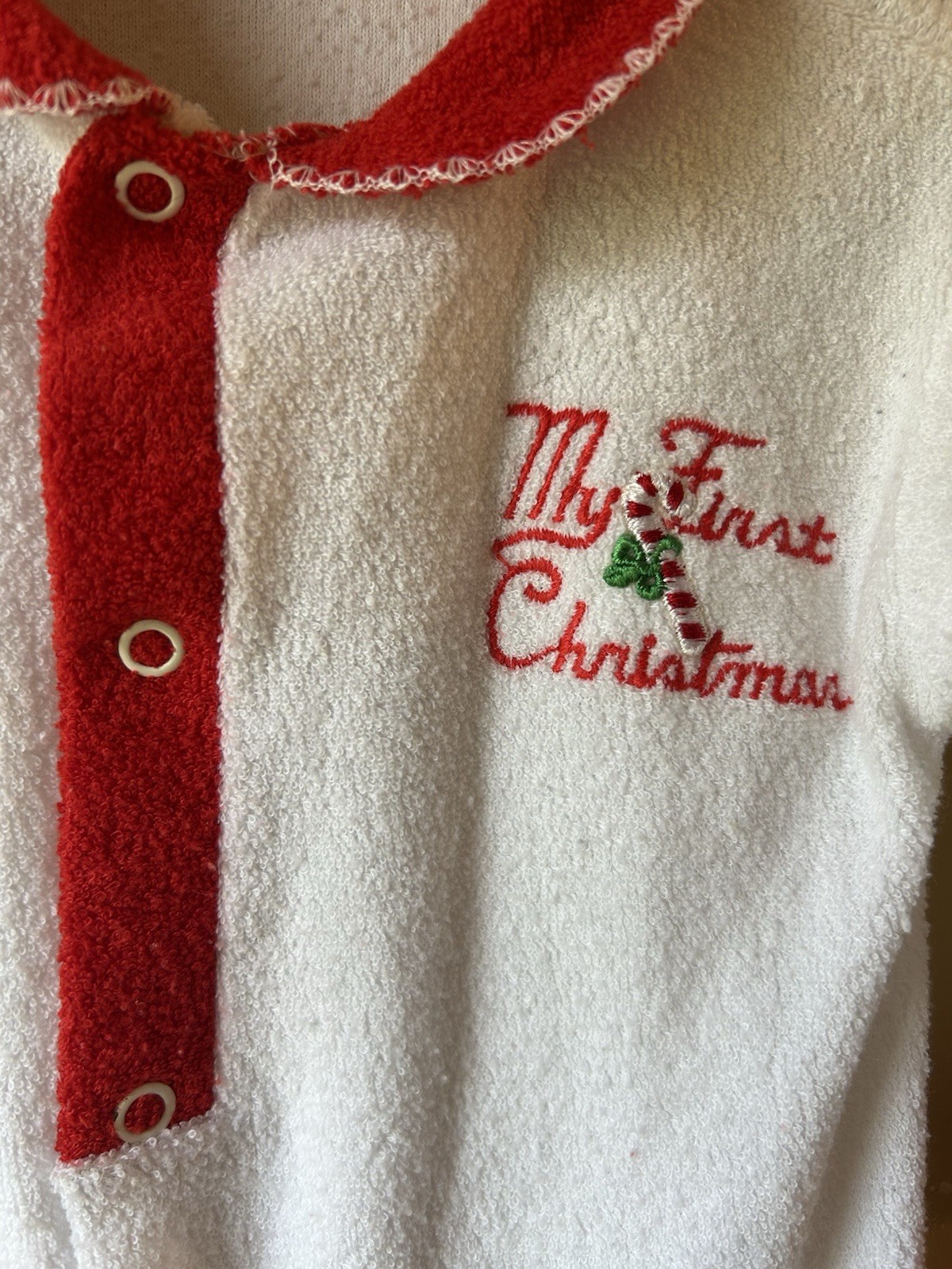 Vintage 80 s Baby Footed Pajamas My First Christmas Trimfit Terry Cloth 12M