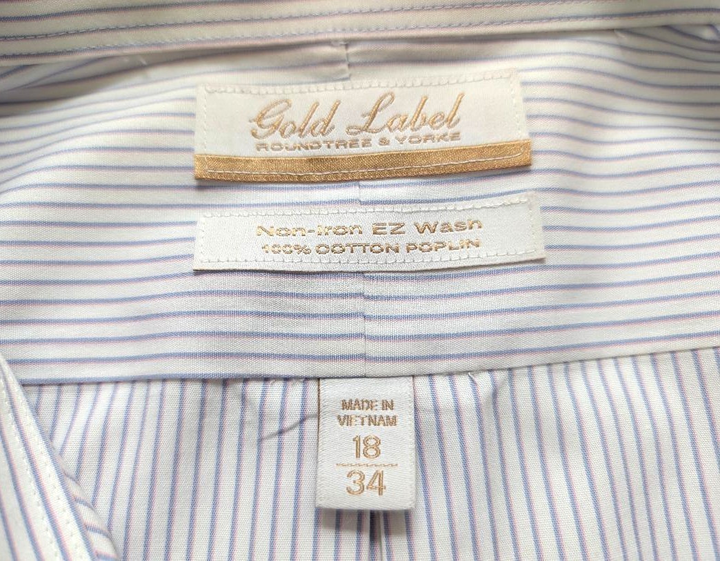 Gold Label Roundtree Yorke Men's Dress Shirt 18 x 34 Non-Iron EZ Wash Preppy