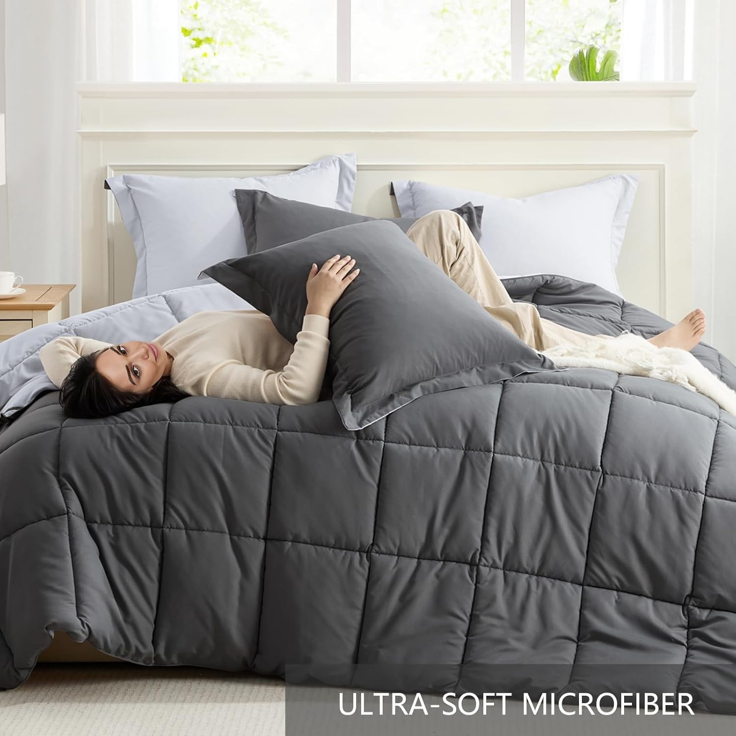 Luxurious Reversible Full/Queen Comforter Set in Grey - Perfect for Every Season