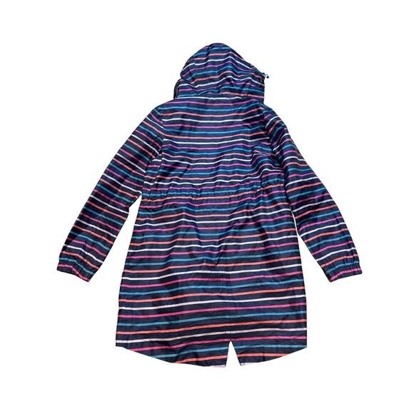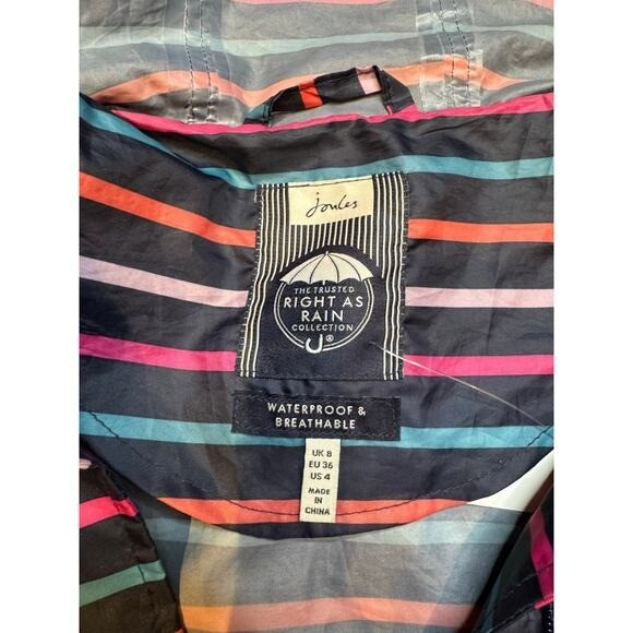 Joules Right As Rain Striped Waterproof Hooded Rain Jacket Navy Pink Orange US 4