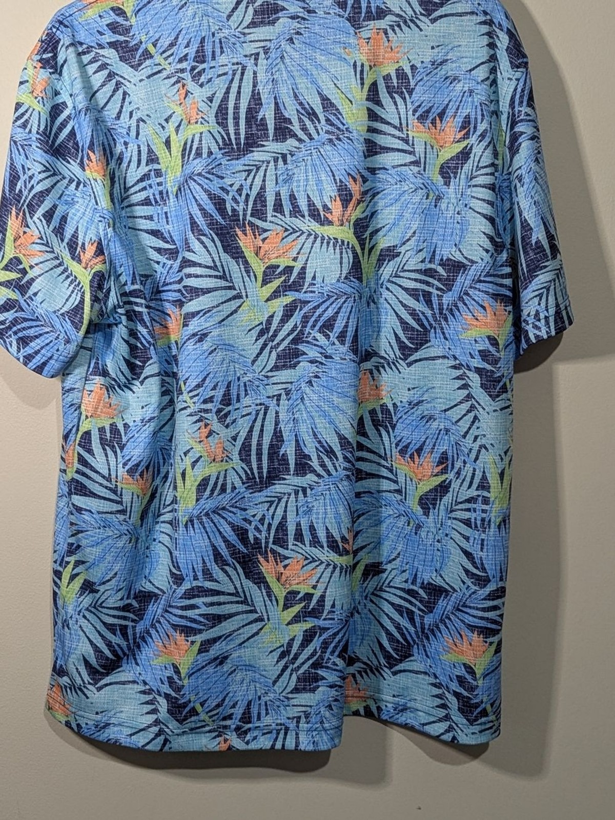 как выглядит IZOD Saltwater Tropical Print Polo Shirt Blue Floral Relaxed Fit Size Large фото