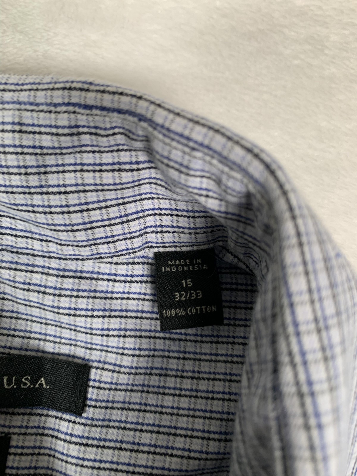 как выглядит John Varvatos Dress Shirt Mens 15 32/33 Blue Plaid Slim Fit L/S Spread Collar фото