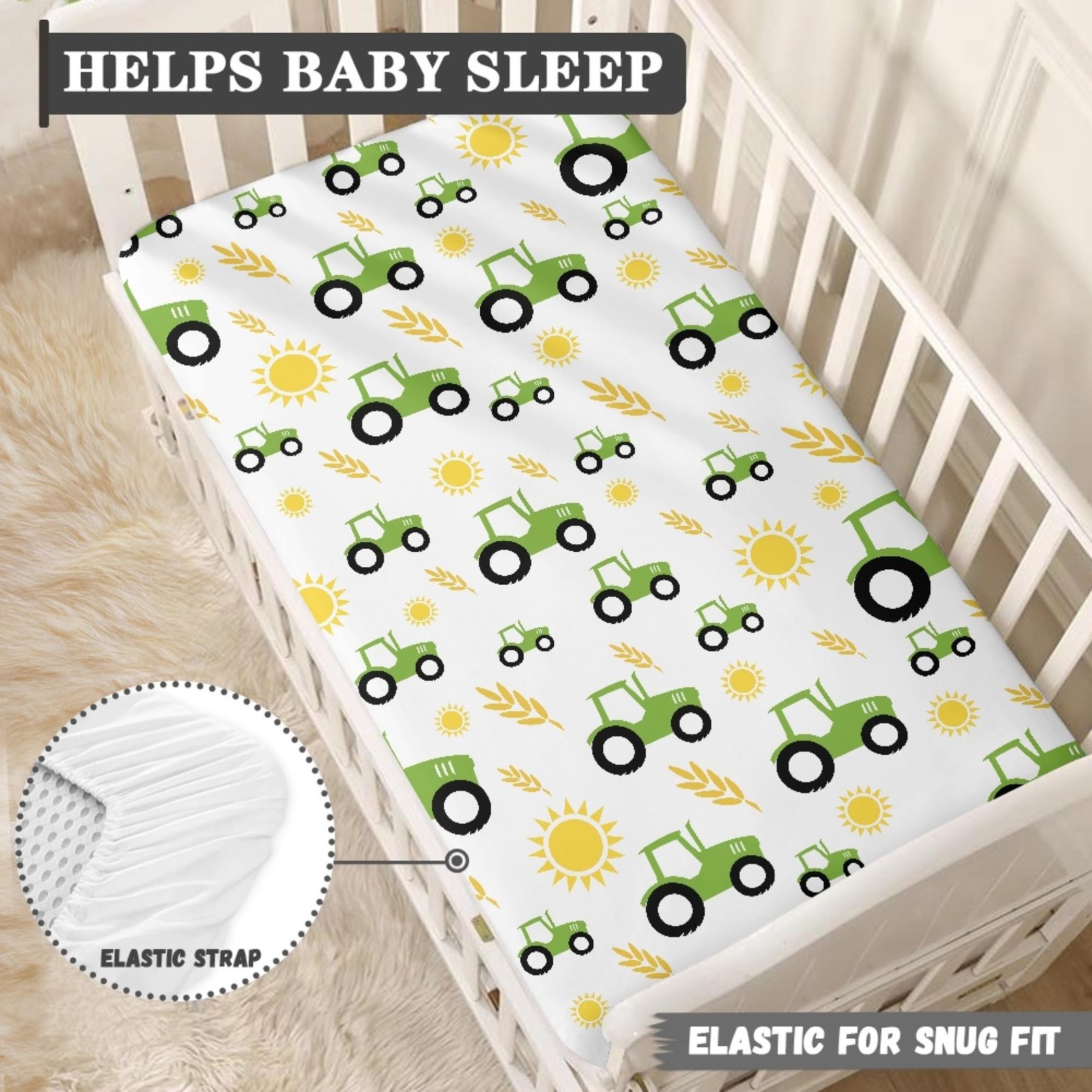 Green Tractor Farm Fitted Crib Sheet Yellow Sun and Rice Crops Standard Crib ...