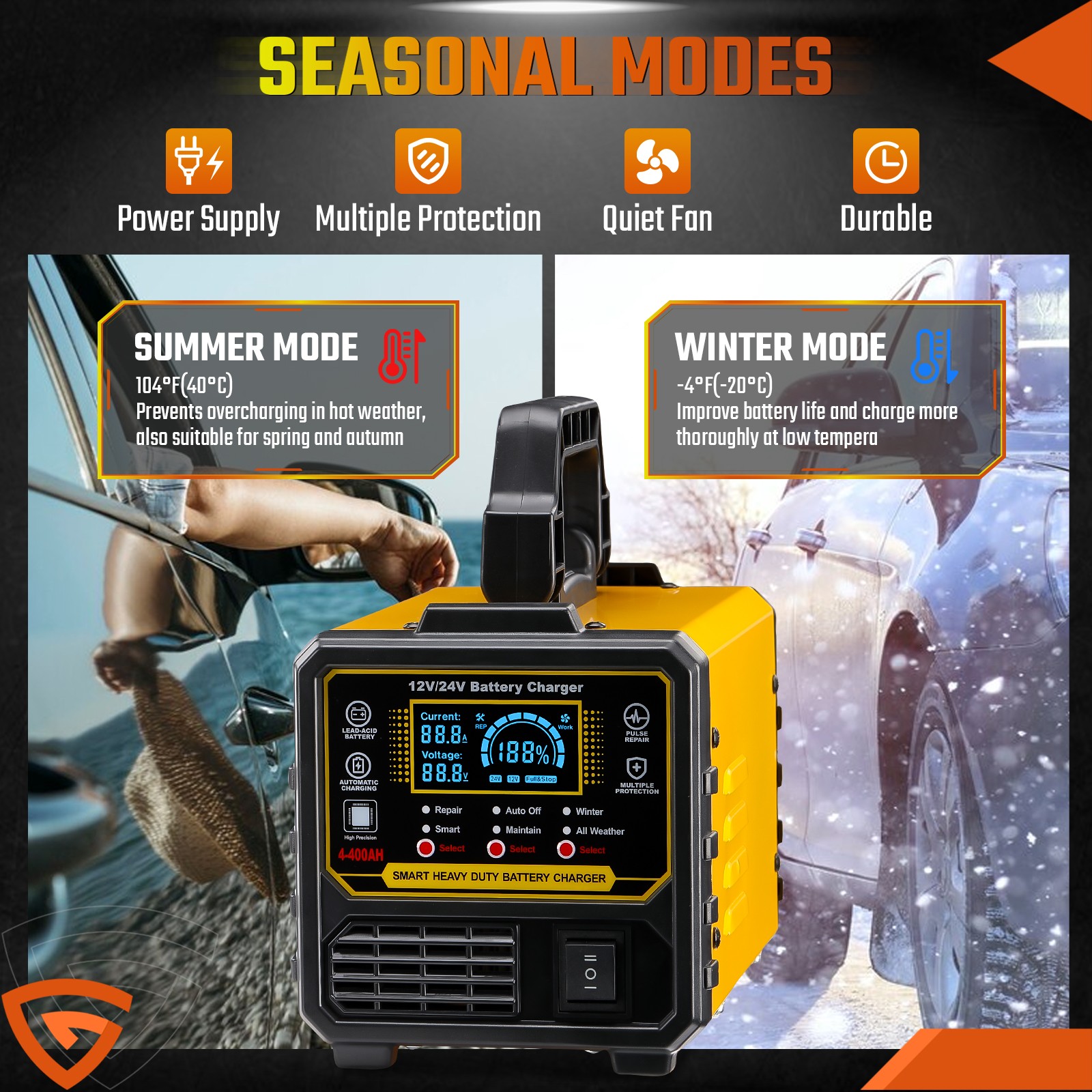 12V 24V Car Battery Charger Heavy Duty, 0-15A Automatic Battery Maintainer