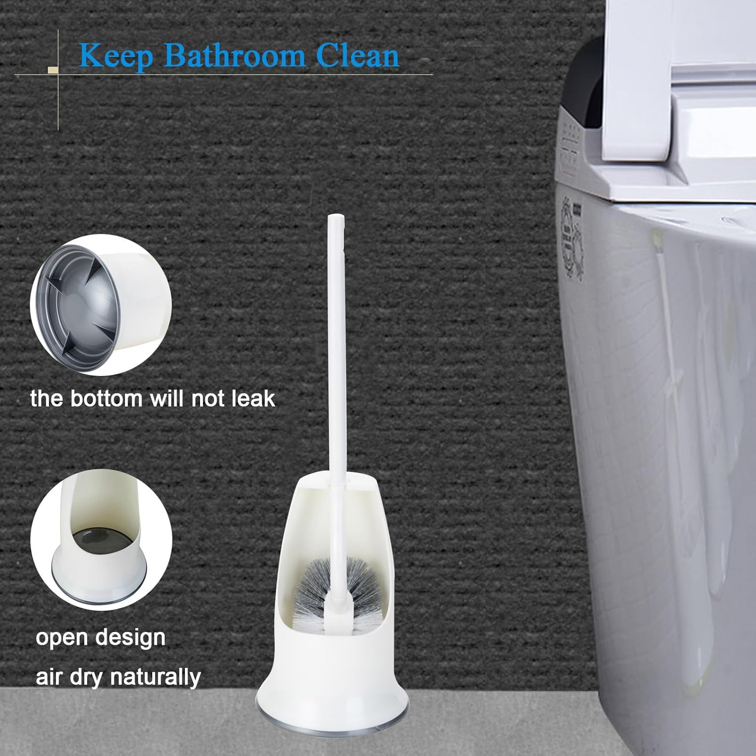 2 Pack Curved Toilet Bowl Brush with Holder for Bathroom, Compact Toilet Brush D