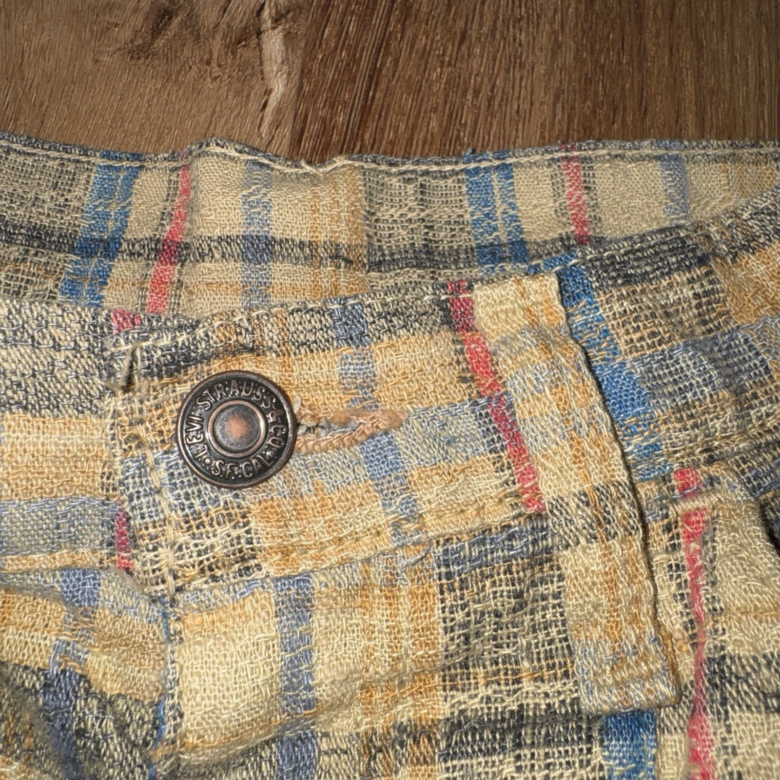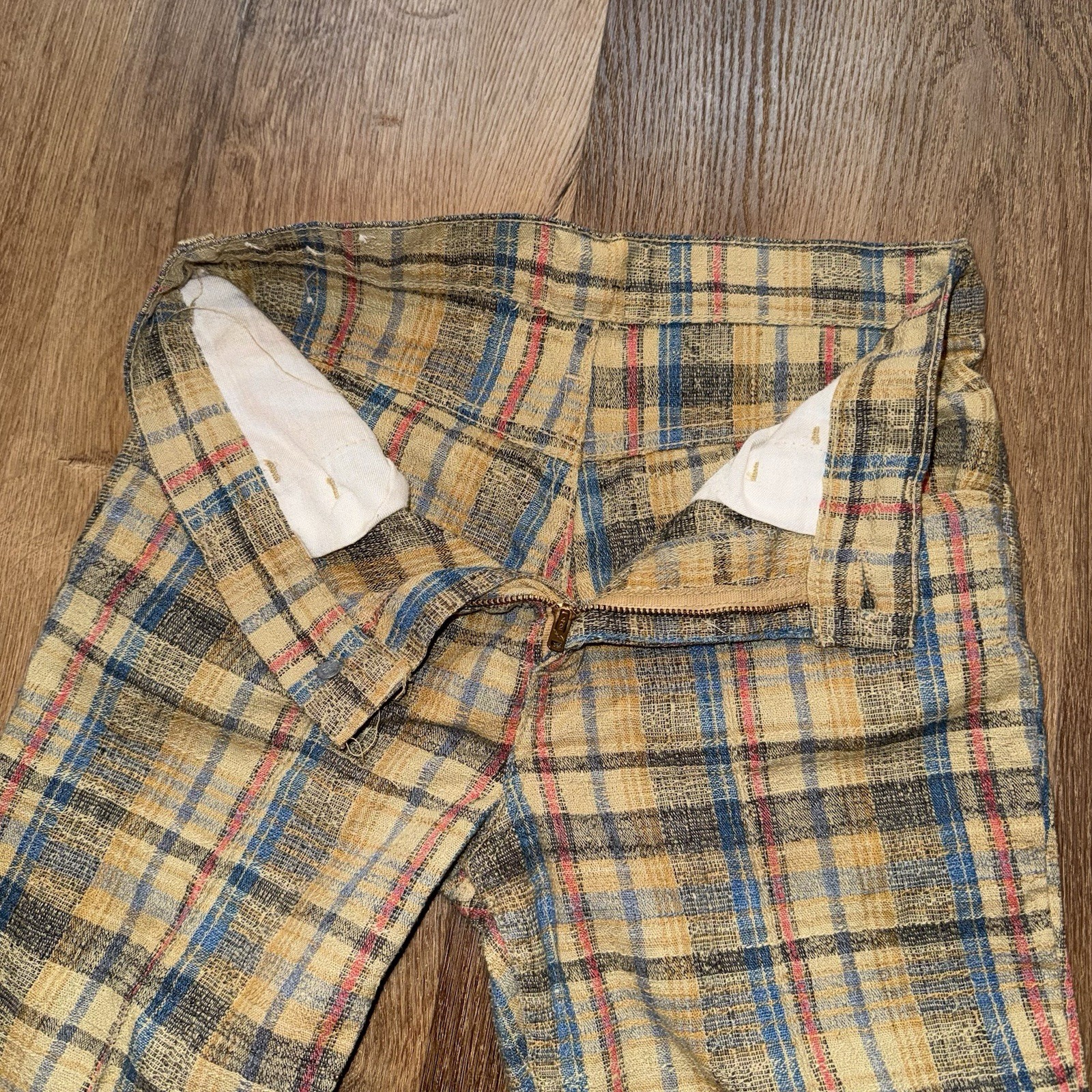 Vtg Levis Bell Bottom Pants Womens 28 x 30 Plaid 60s 70s Disco Hippie Boho Mod