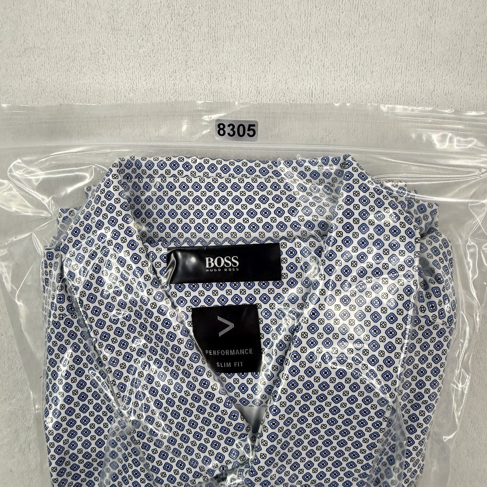 HUGO BOSS P-Hank-Kent Slim Fit Performance Stretch Shirt Mens 16 Blue Geometric