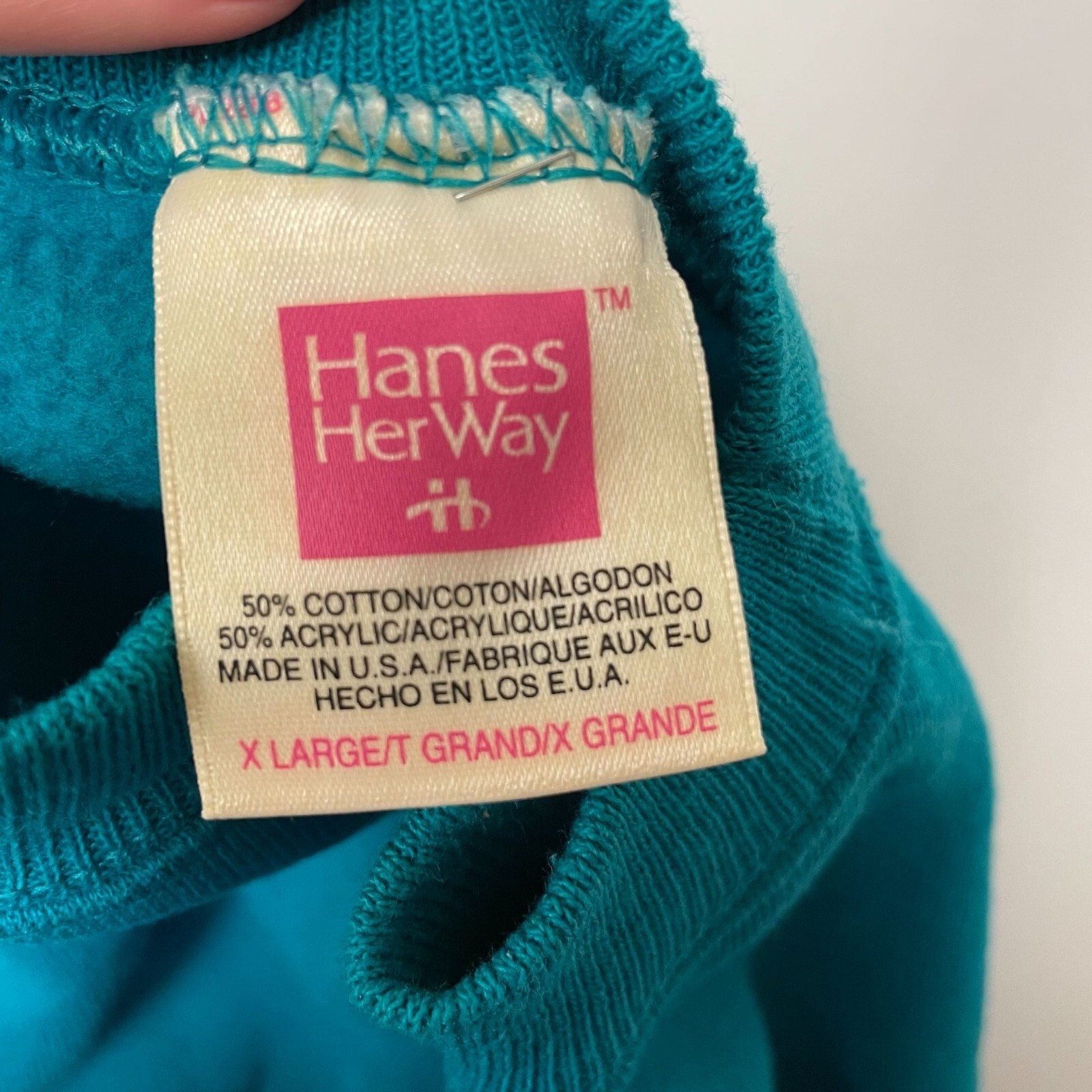 Vtg 80 s Hanes Her Way Blue Athletic Workout Gym RAGLAN 50/50 Sweatshirt USA XL