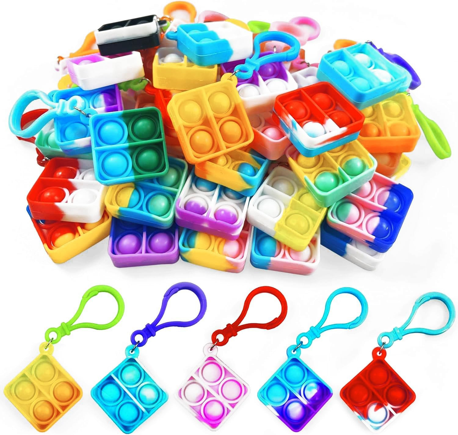 100 Pack Square Pop Fidget Keychain Pop Fidget Toys Bulk Party Favors for Kids 4