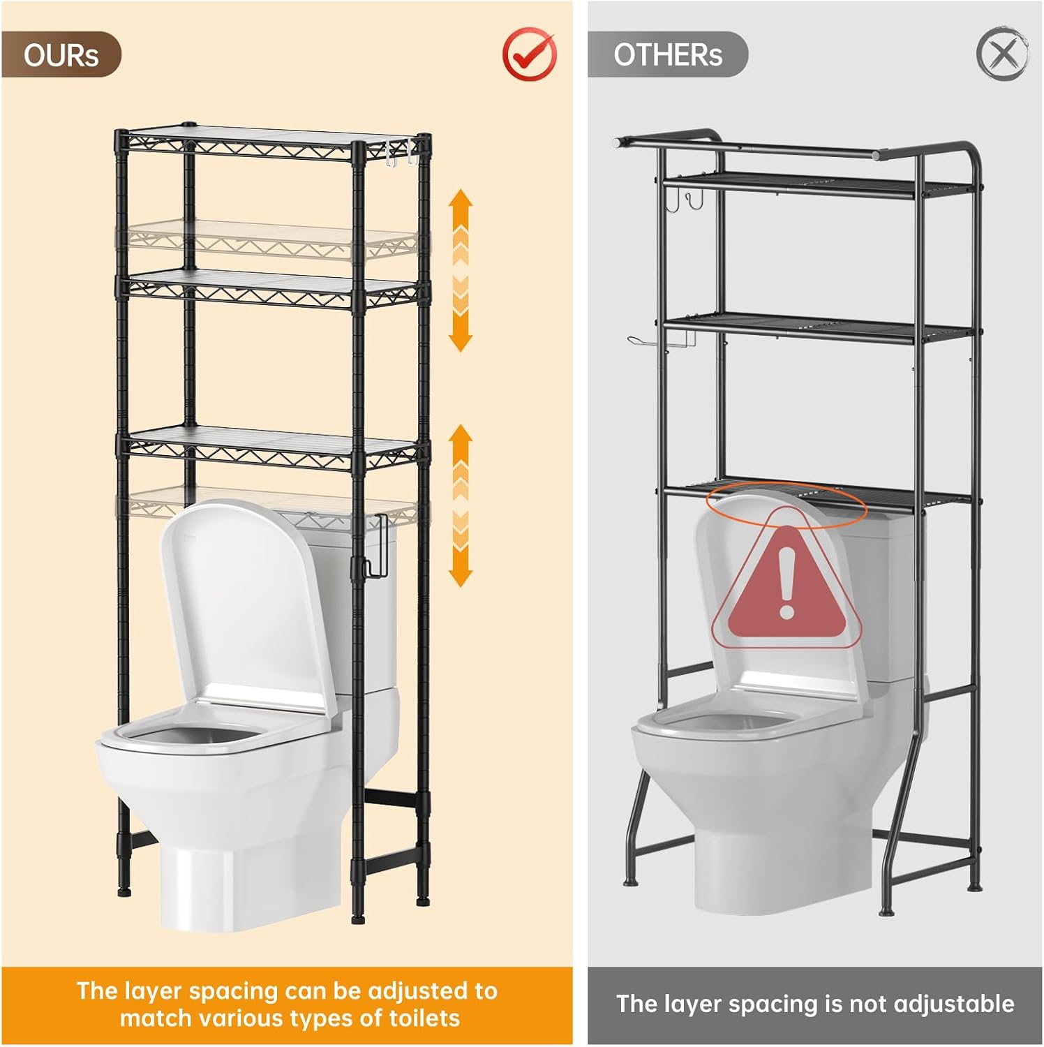 Over The Toilet Shelf, 3-Tier Adjustable Freestanding Metal Bathroom