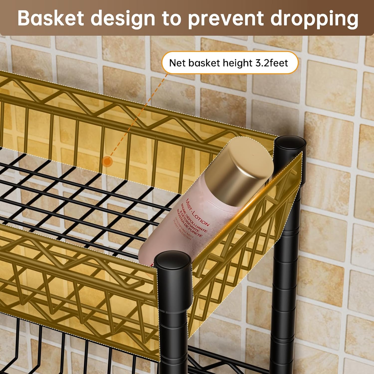 size: Black with Baskets-10"D x 24"W x 66"H