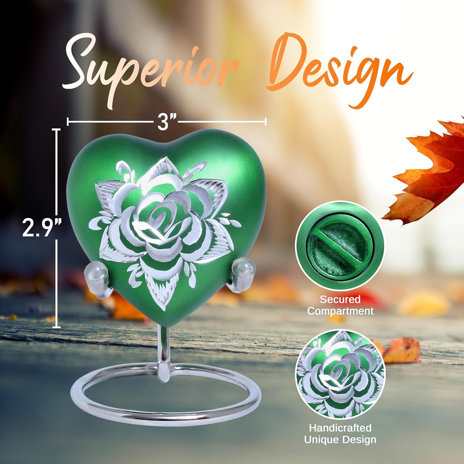 • Rose Heart Keepsake Urn for Human Ashes Floral Mini Memorial Urn with Stand Ve