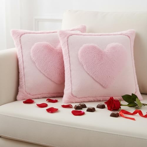 Valentines Throw Pillow Covers 18x18 Inch Set of 2 Pillow Pink Heart Pattern