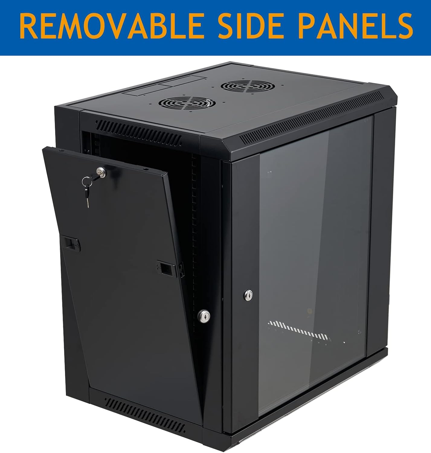 12U Wall Mount Server Cabinet Network Rack Enclosure Locking Glass Door
