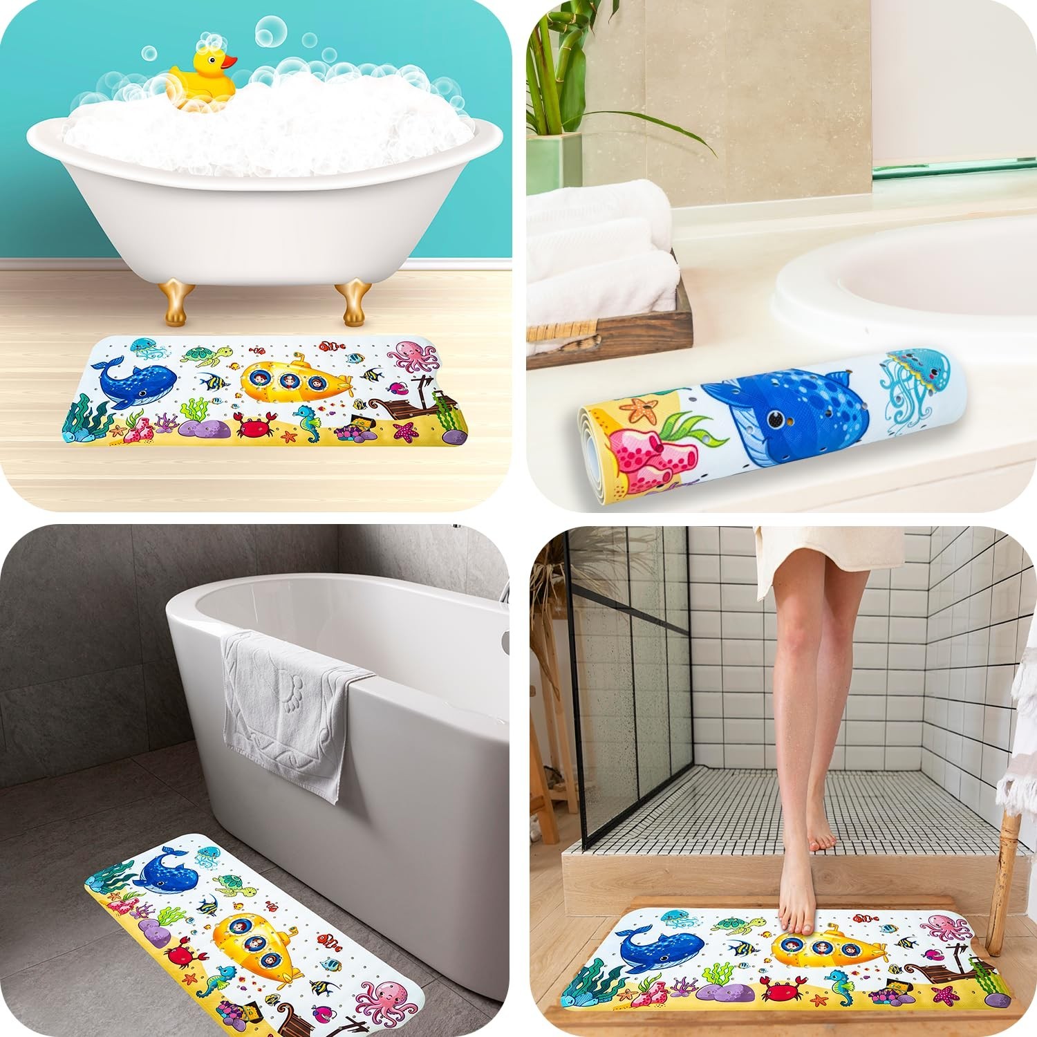 Kids Bath Mat with Ocean Theme Design, 40x16 inches, Non-Slip with 200 Suctio...
