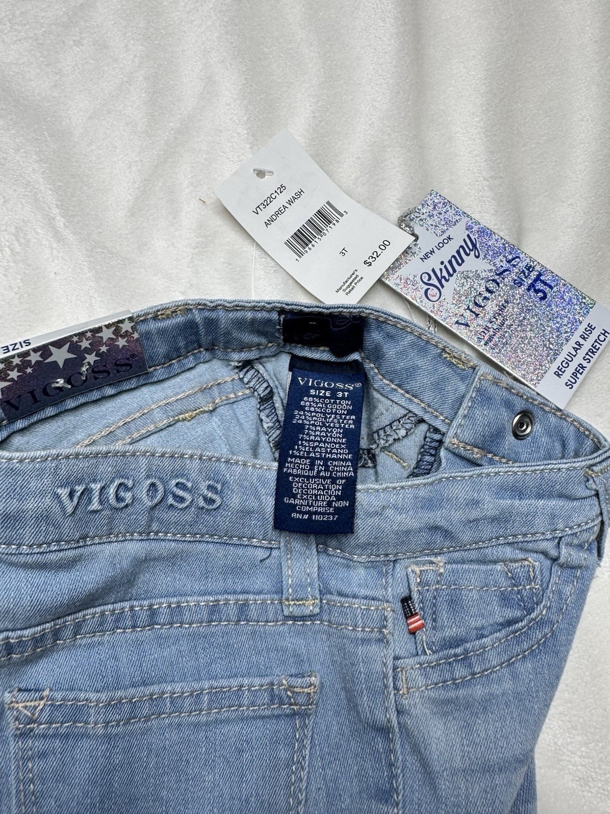 VIGOSS The Jagger Skinny Girls Jeans 3T Blue Star Pattern Adjustable Waist