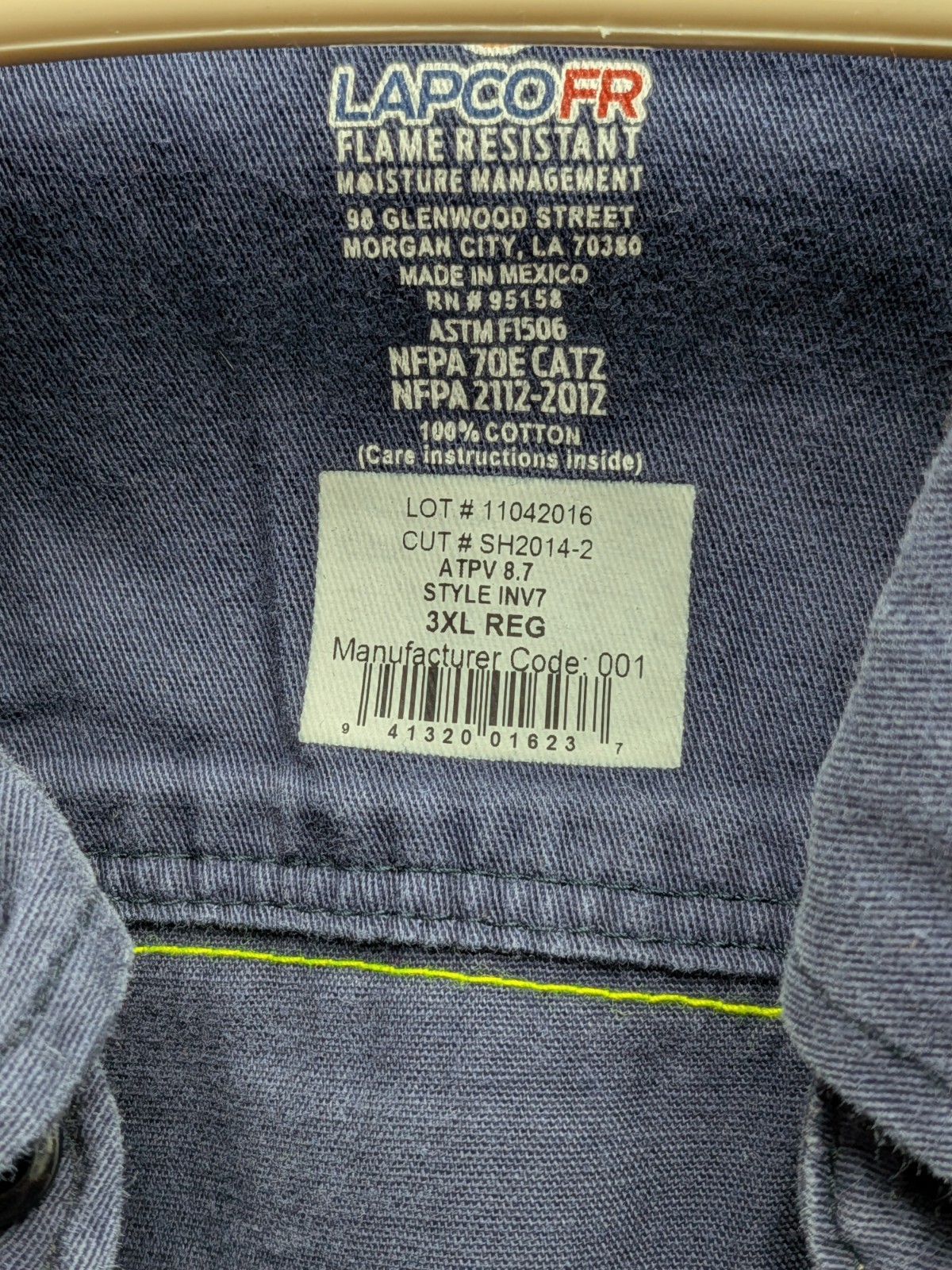 как выглядит Lapco FR Work Shirts 3 Hi Vis Stripes Blue 100 Cotton Moisture Management 3XL фото