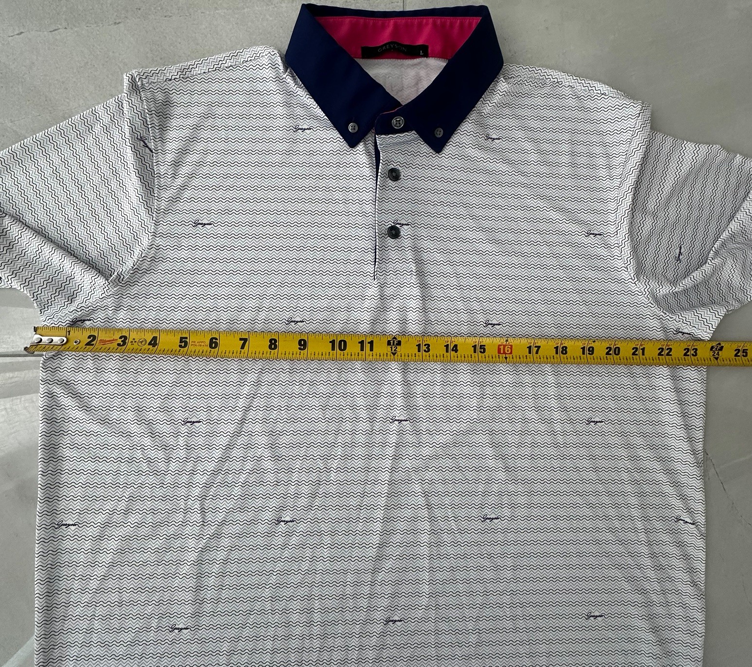 как выглядит GREYSON Golf White Geometric Short Sleeve Performance Polo Shirt Mens Size L фото