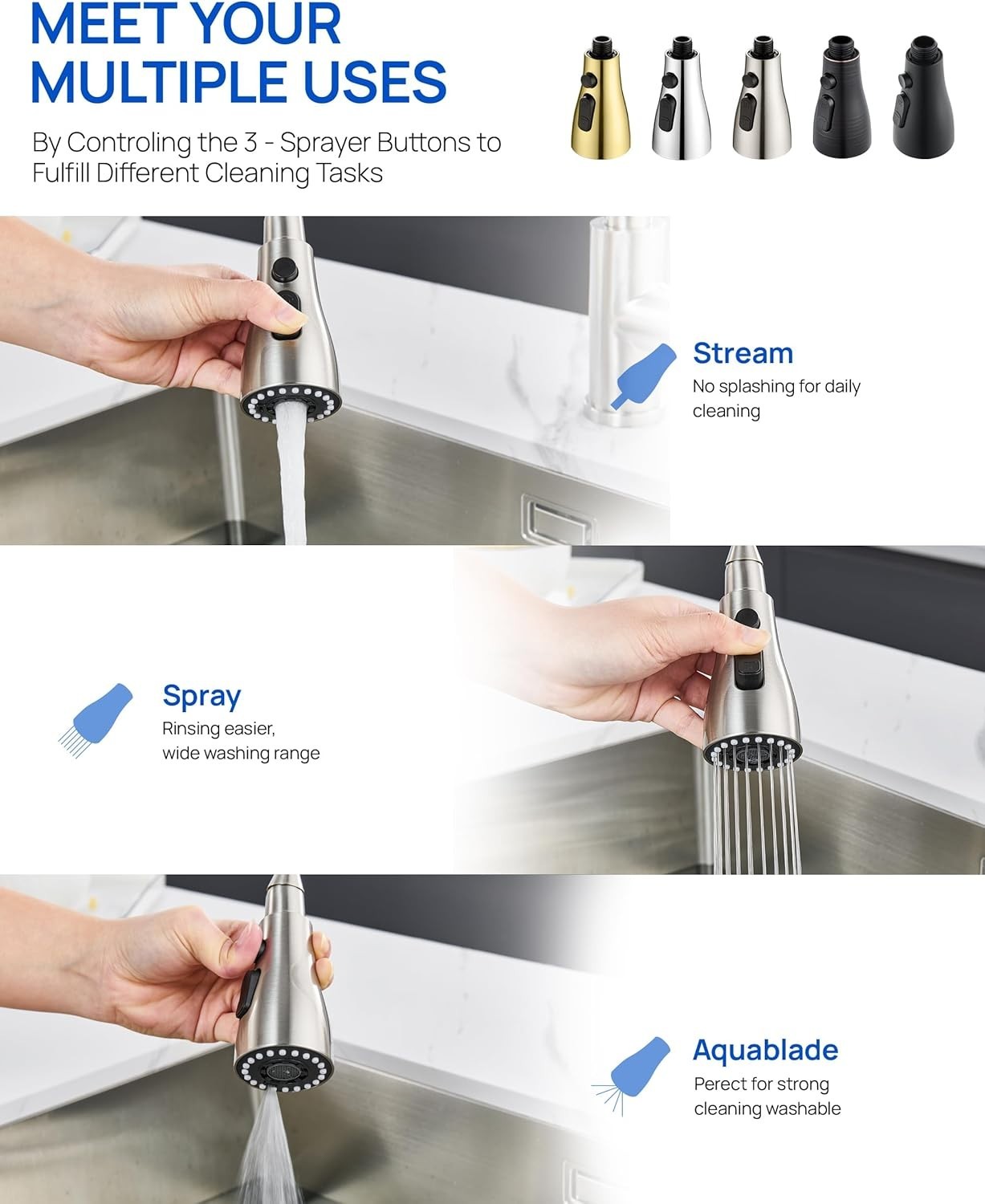 Pull Down Kitchen Faucet Sprayer Head Replacement Part with 15 Adapters, 3 Fu...