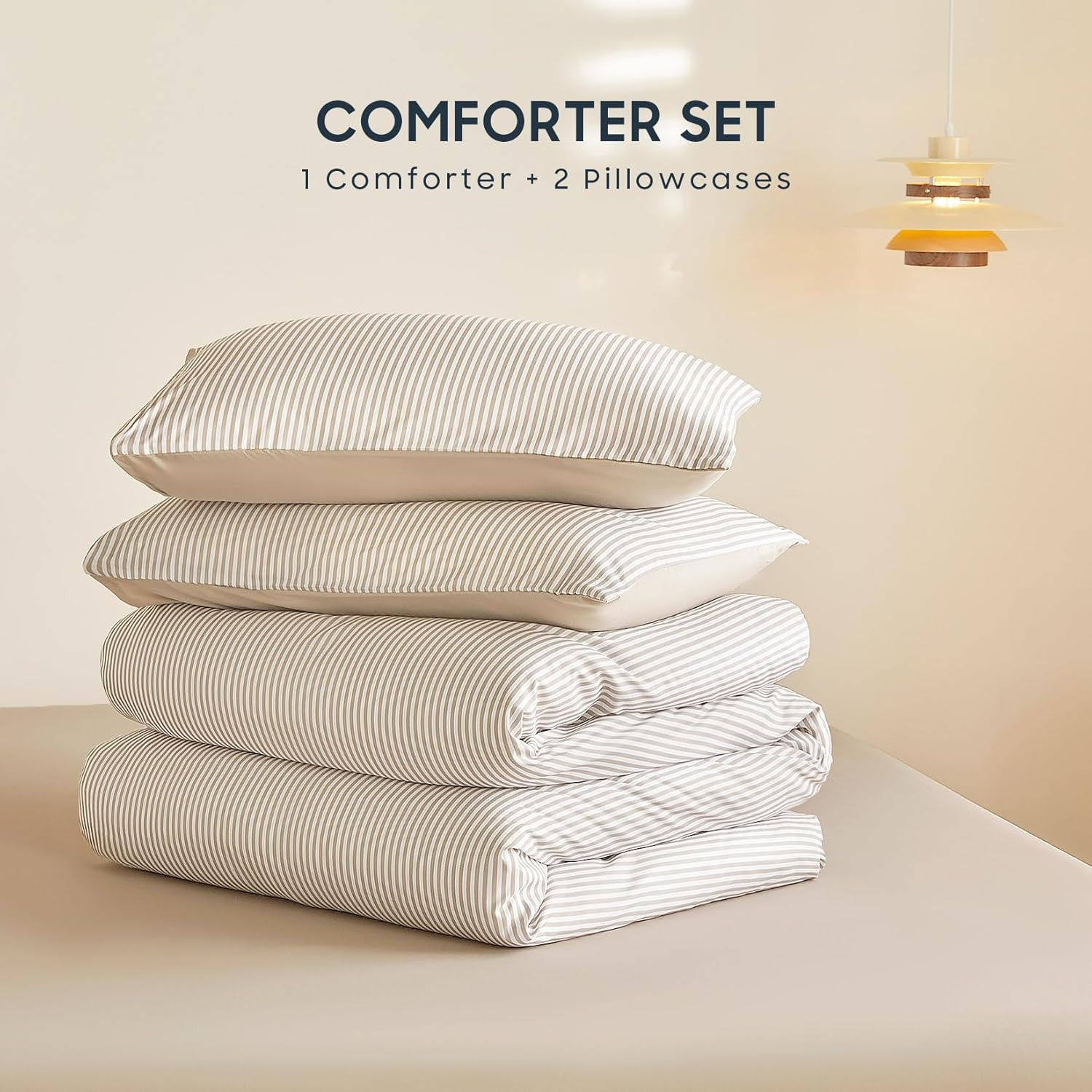 - Striped Comforter Set, Ticking Stripe Vertical Pinstripe Neutral Farmhouse Pat