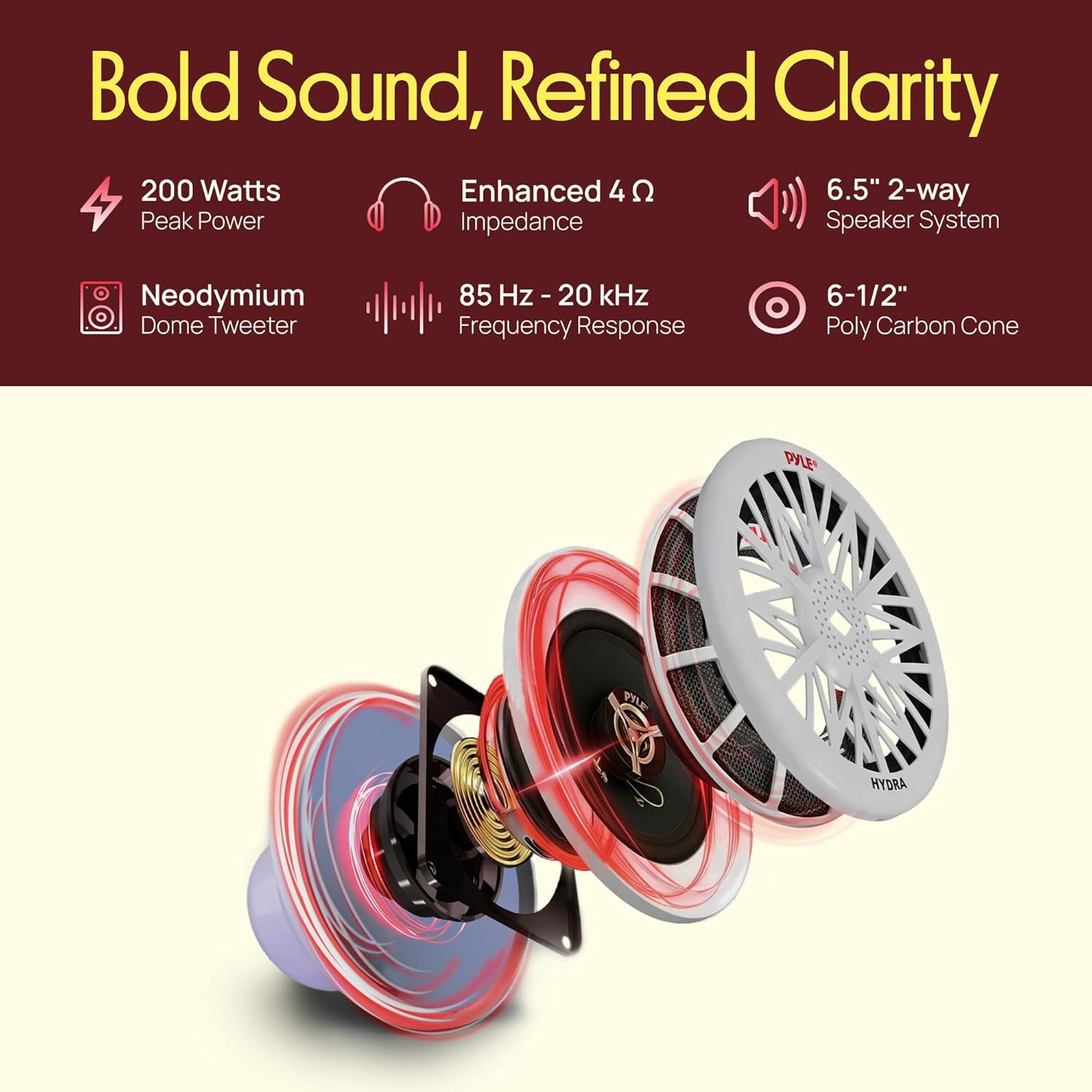 6.5 Inch Dual Marine Speakers - 2 Way Waterproof and Weather Resistant Outdoor