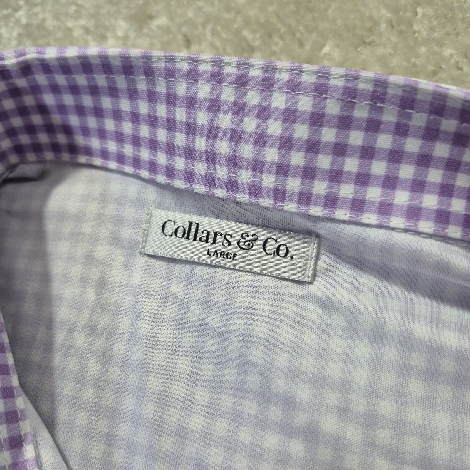 Collars and Co Dress Collar Polo Shirt Mens Large Purple Check Performance Golf