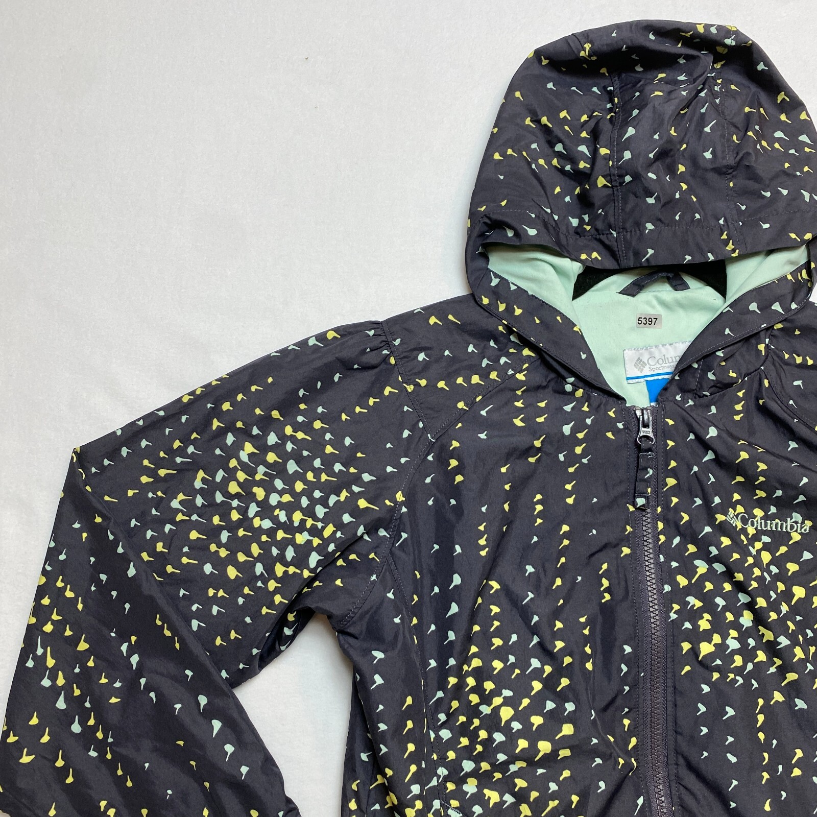 как выглядит Columbia Rain Jacket Youth 14-16 Gray Omni Shield Lined Hooded Windbreaker фото