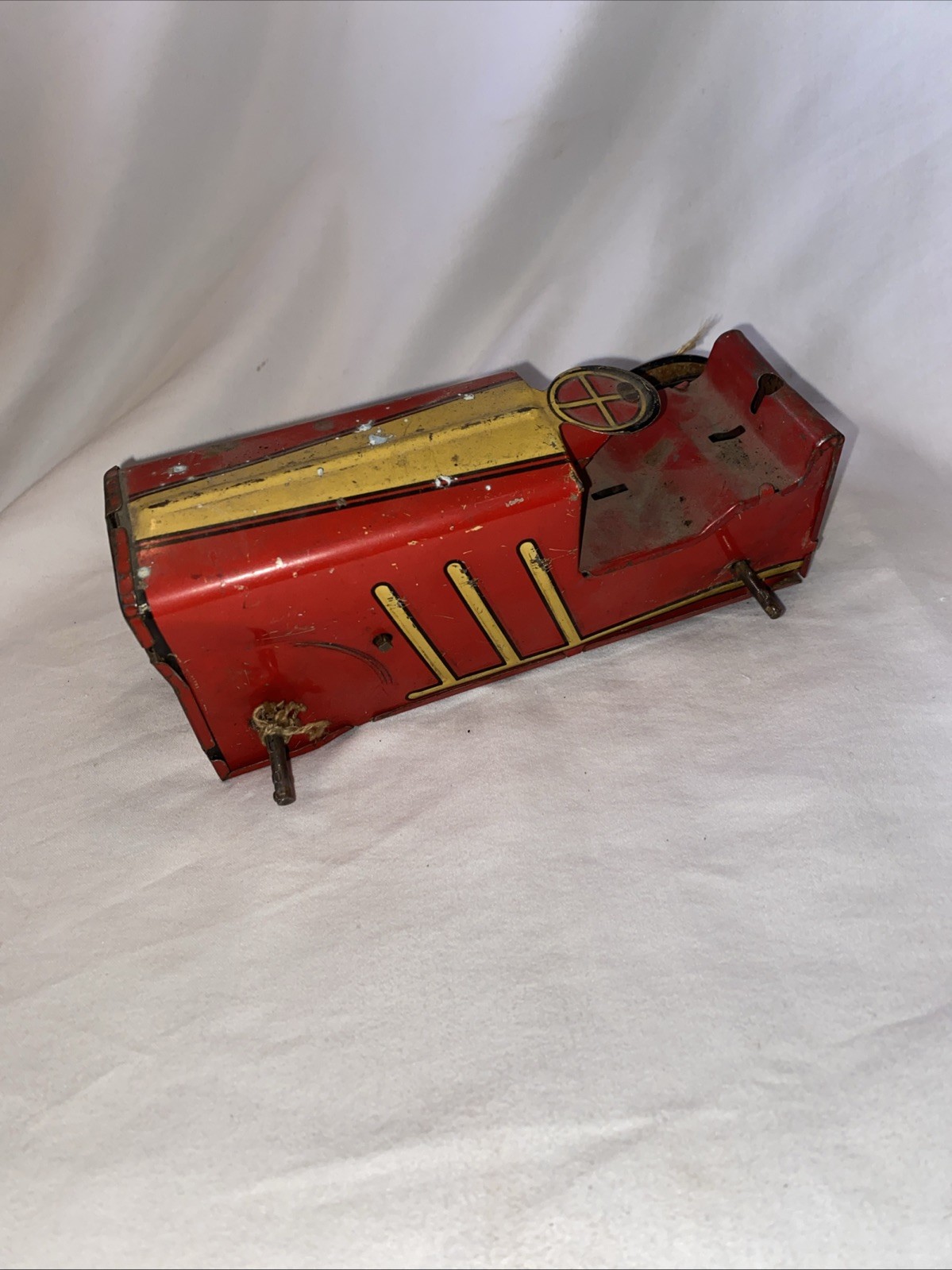 intage Marx Toy No. 2 Wind-up Red Tin Litho Tractor - Missing Two Wheels Vintage