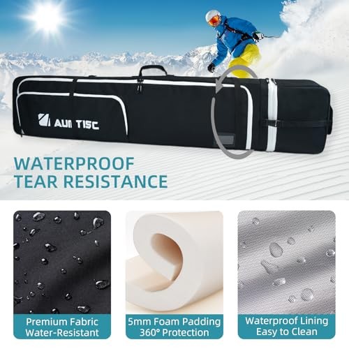 Padded Snowboard Bag for Air Travel, Adjustable Length 156cm-181cm Black-A