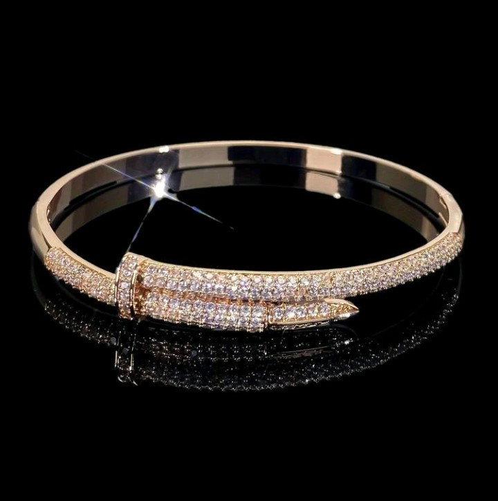 как выглядит Womens 18k Gold Elegant Nail Design Zirconia Bangle  Gold /Silver /Copper фото