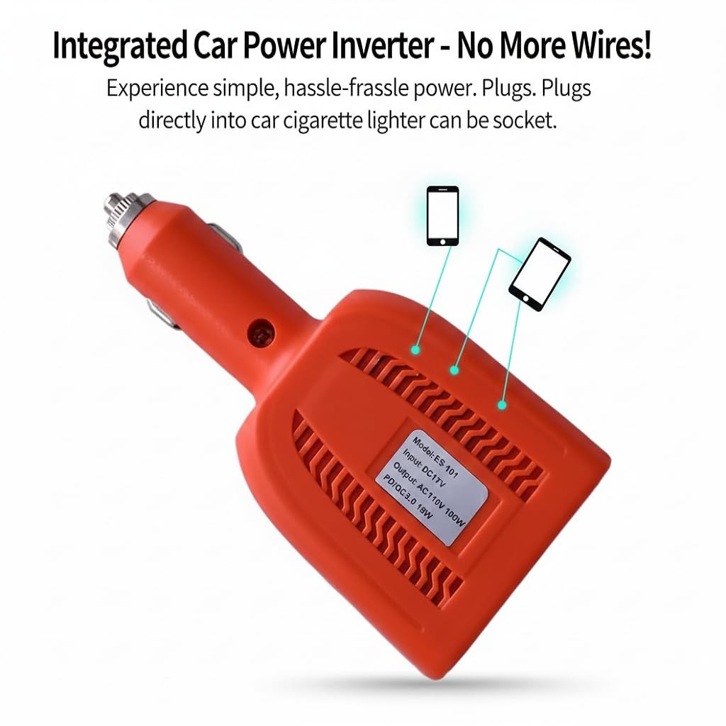 100W Car Power Inverter, DC 12V to 110V AC Outlet Plug Adapter, 18W USB-C PD ...