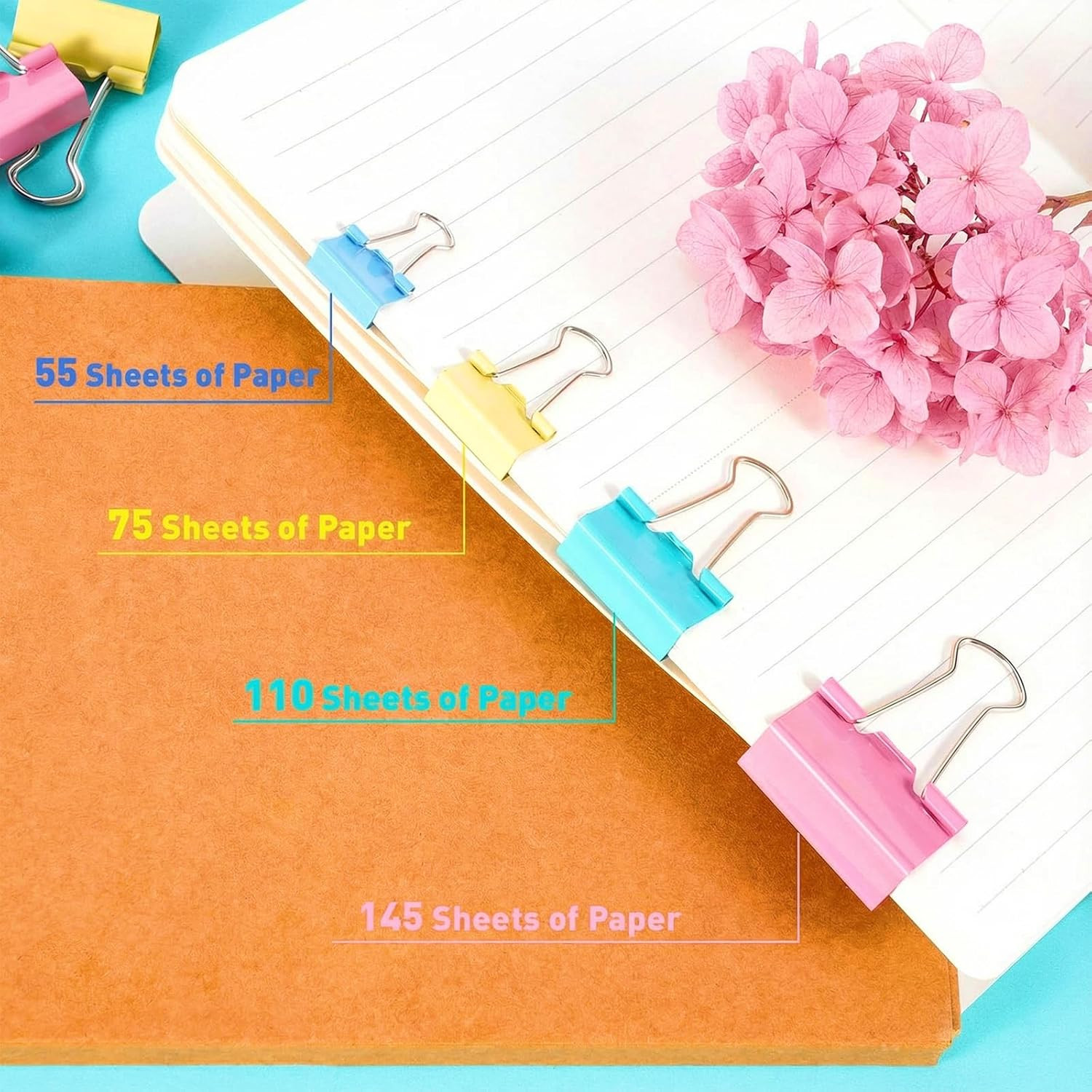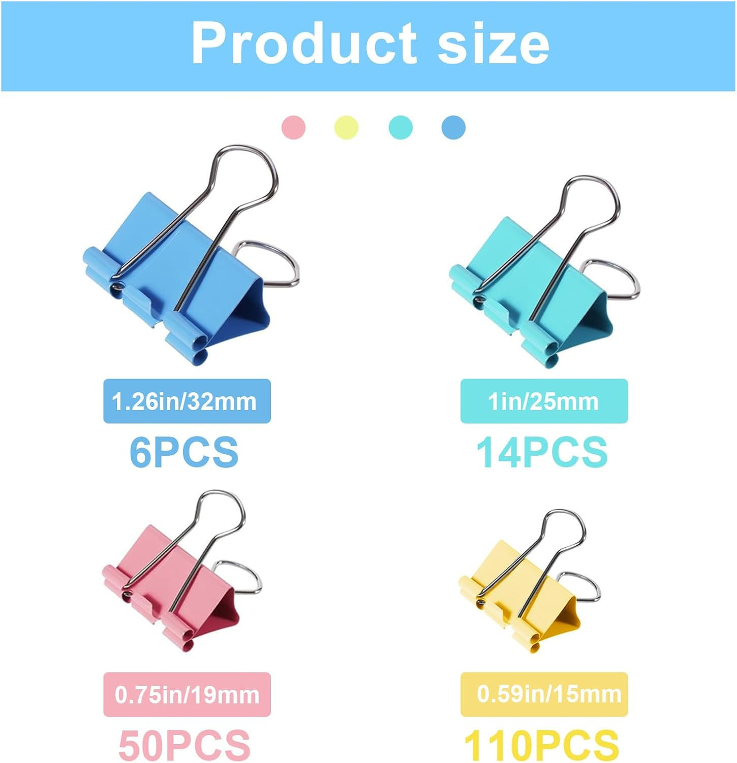 180 Pcs Binder Clips Assorted Sizes, Colored Binder Paper Clips Office Clips Off