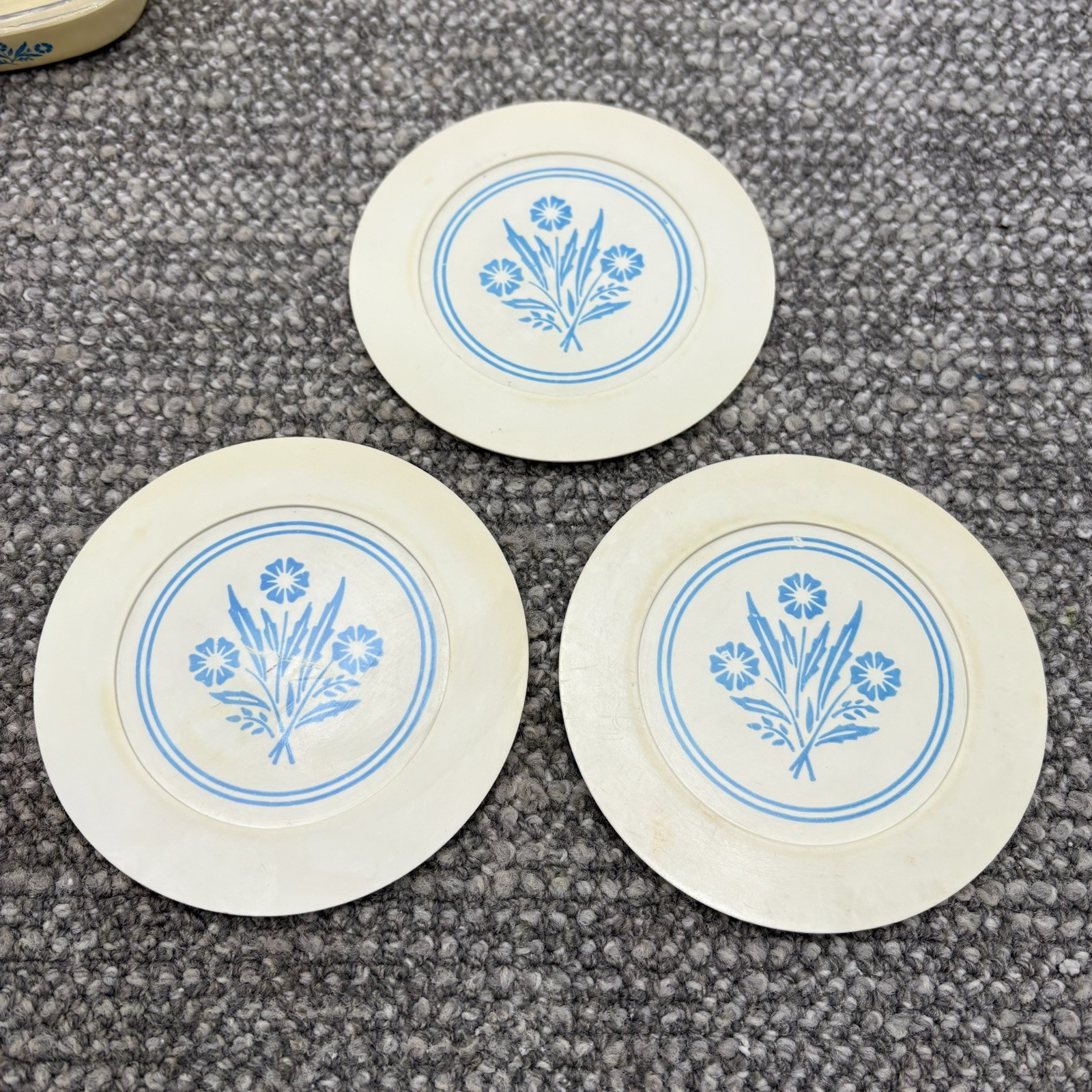 VTG Corning Dishes Covered Casserole Play Dish Plates Cornflower Design Chilton