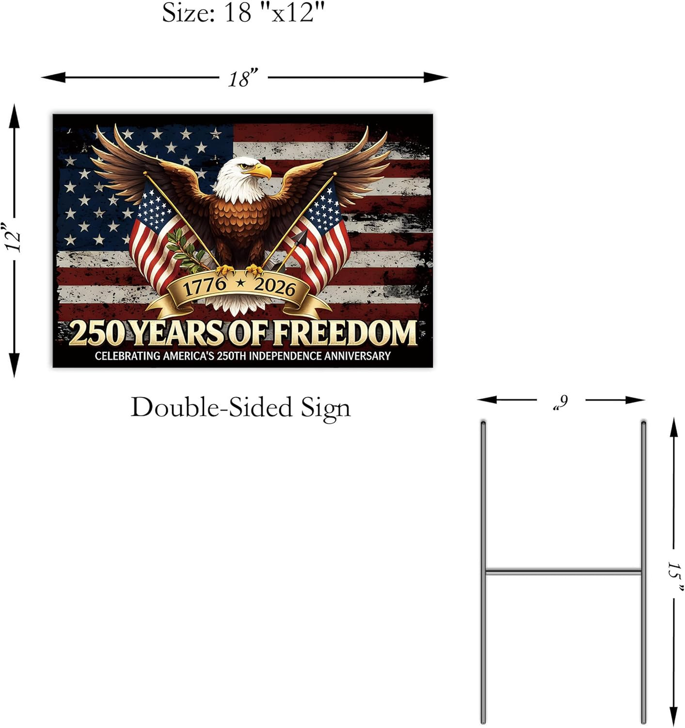 Pre Printed Text: 250th Anniversary Yard Sign America 250 Years of Freedom 1776–202