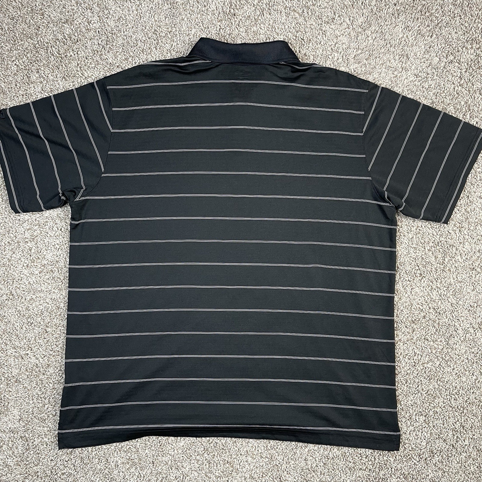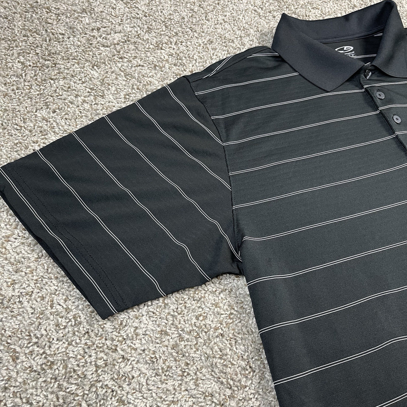 как выглядит Champion Mens Golf Polo Black Shirt XL Duo Dry Striped Embroidered Breathable фото