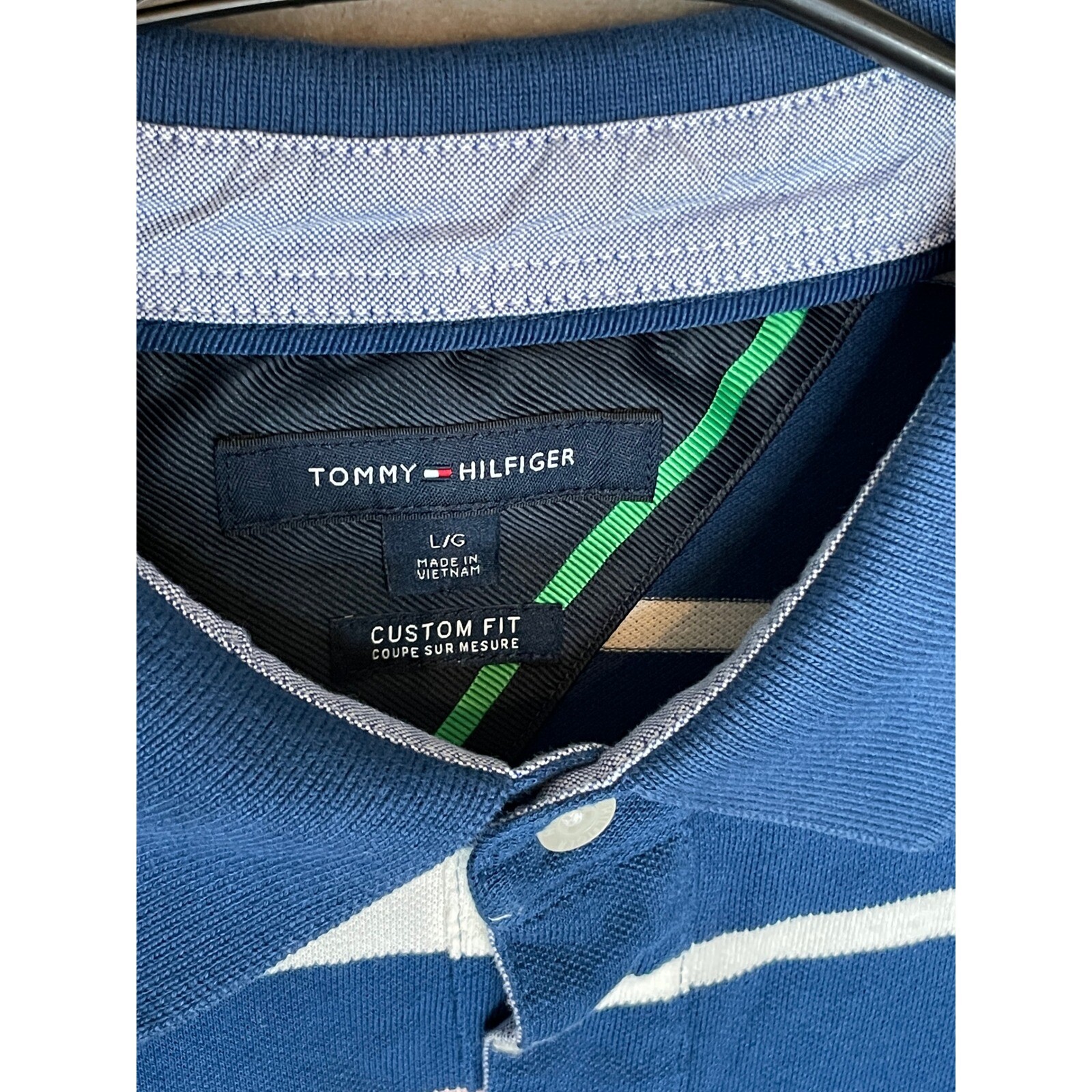 как выглядит Tommy Hilfiger Polo Shirt Mens Large Striped Custom Fit Short Sleeve Crest Logo фото