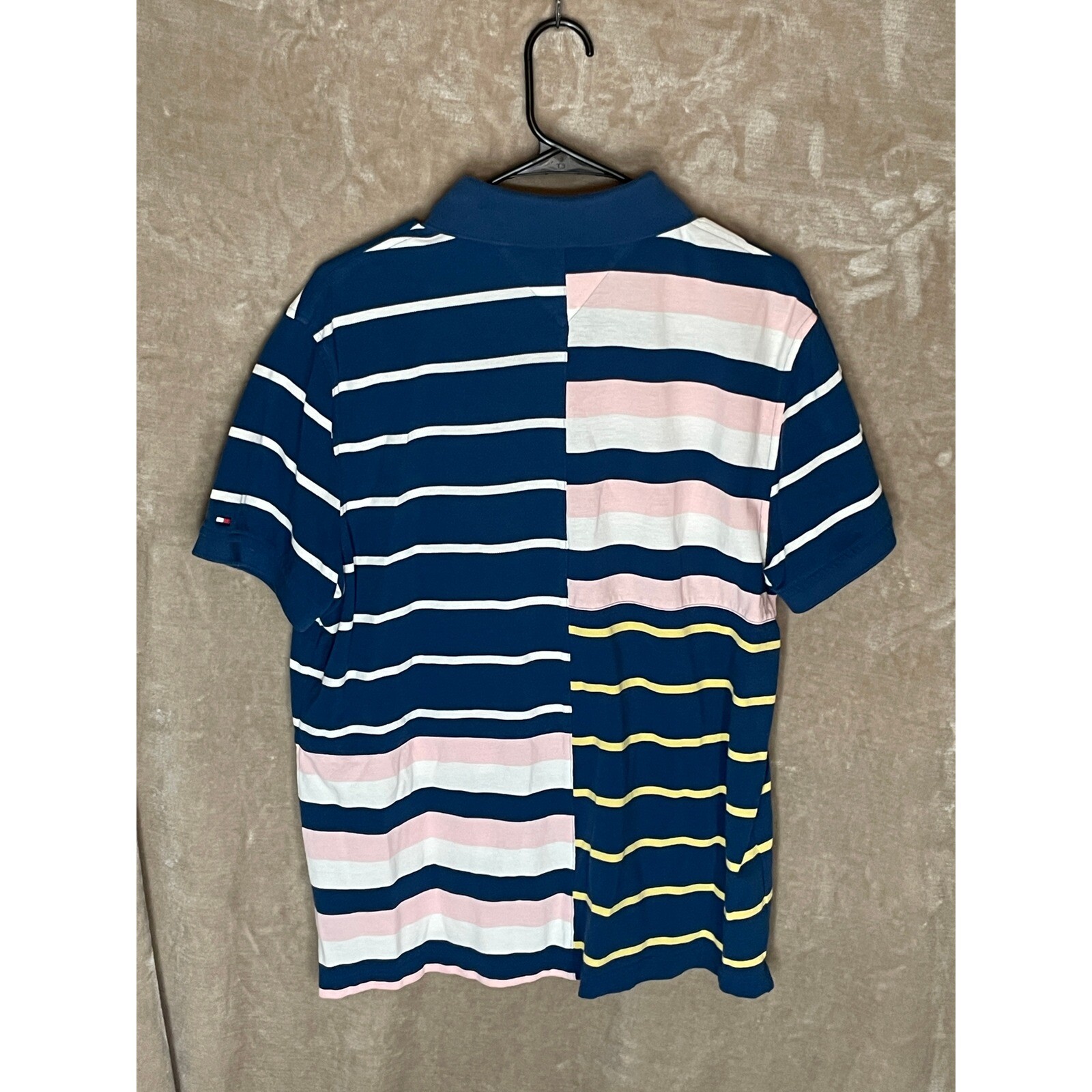 Tommy Hilfiger Polo Shirt Men's Large Striped Custom Fit Short Sleeve Crest Logo