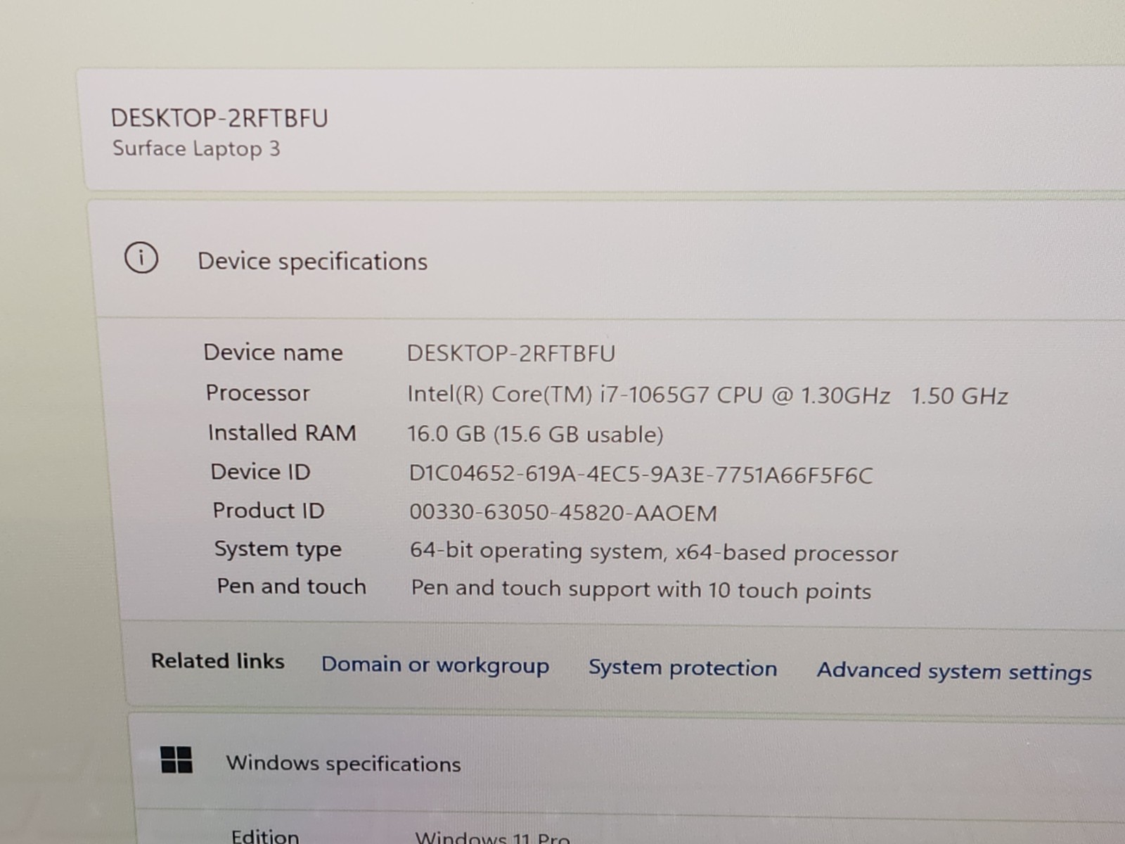 Microsoft Surface Laptop 3 13.5 Touch QHD i7-1065G7 16GB 256GB SSD Win 11 Pro